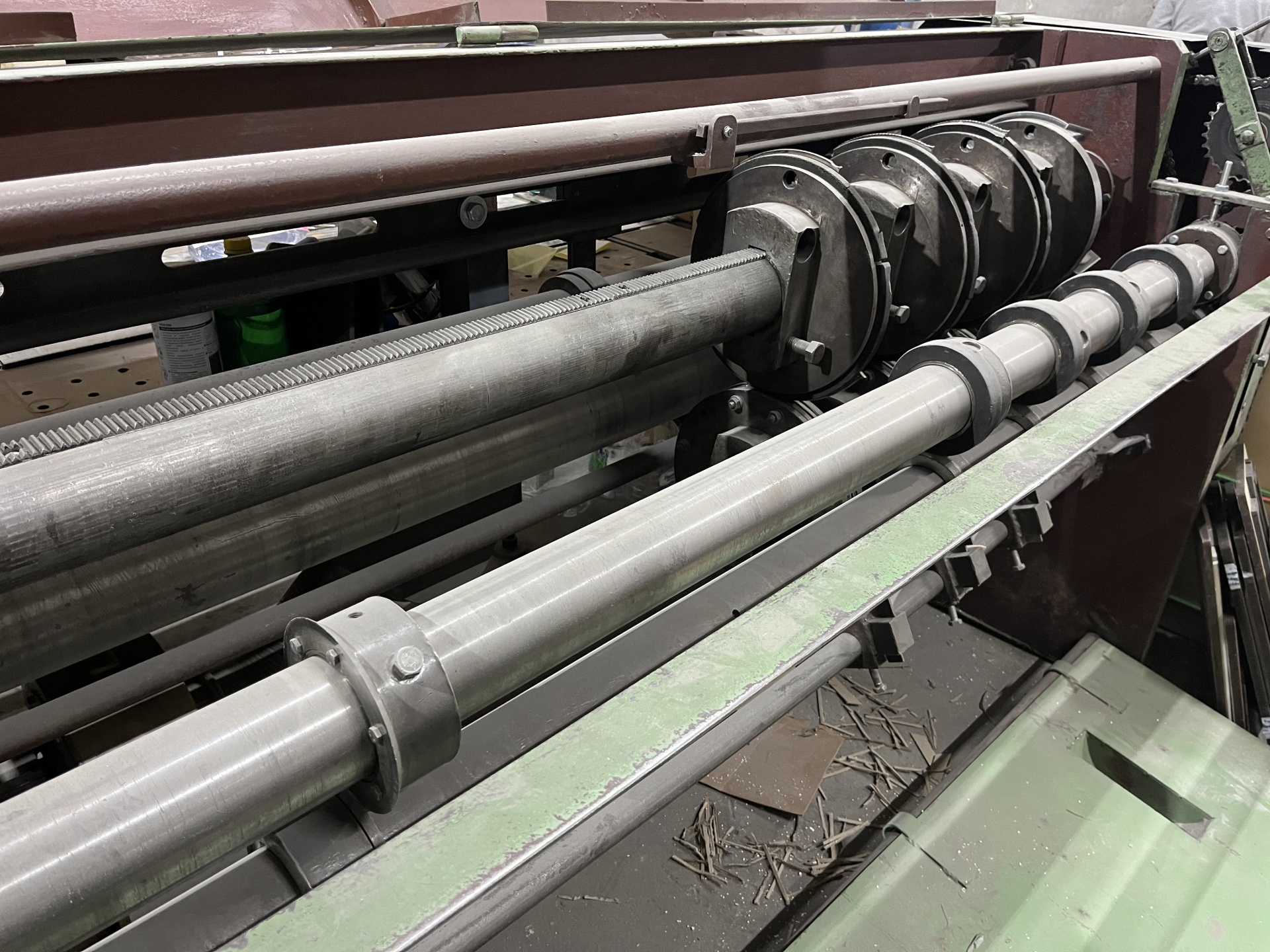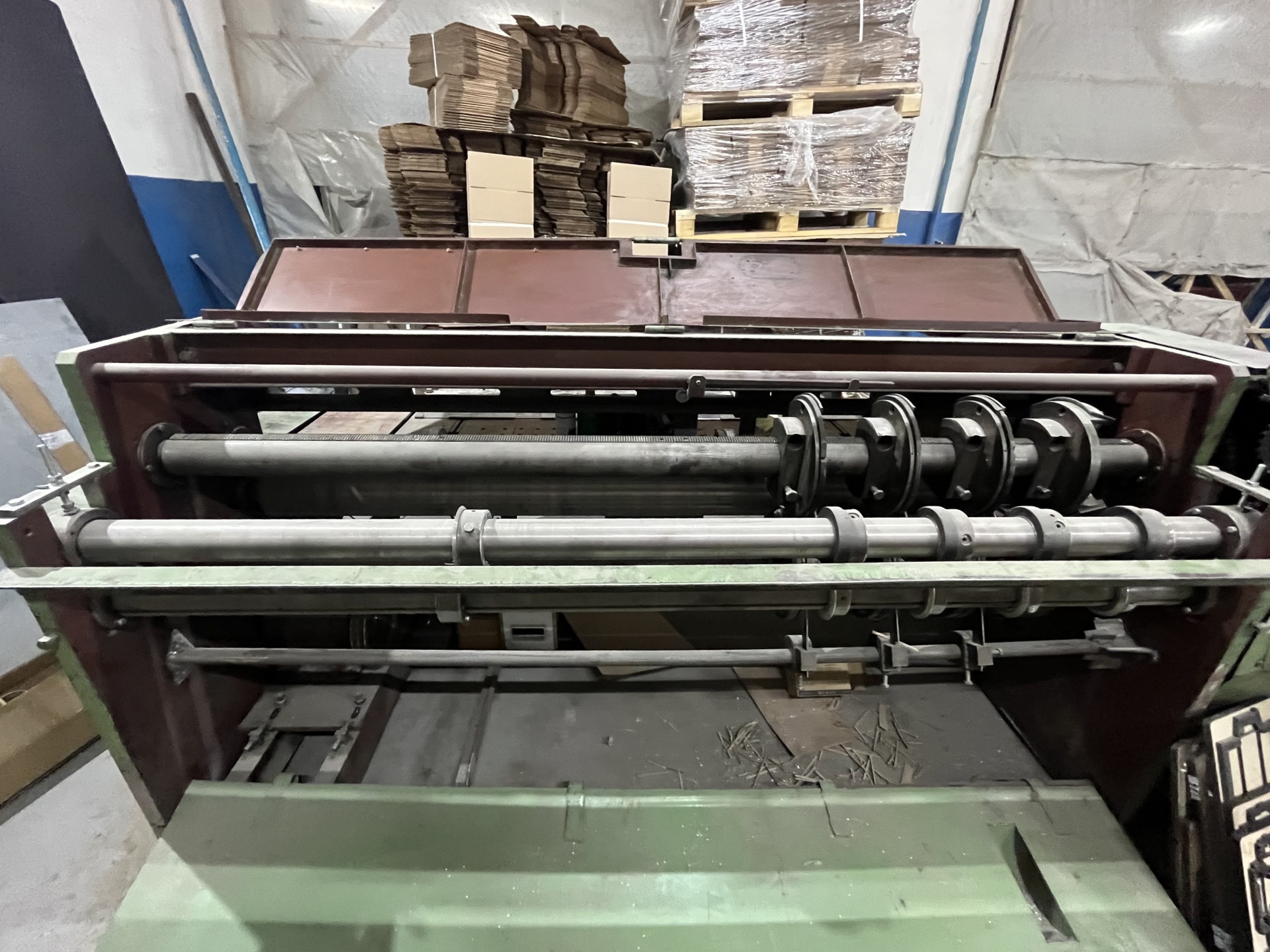 Просекательно рилевочный станок для изготовления четырехлкапанных коробок. Недавно был отлит новый стальной вал, состояние ножей хорошее. Сейчас станок не используется, но подключен к сети и можно приехать посмотреть в работе. Пример вырубленной заготовки на последнем фото