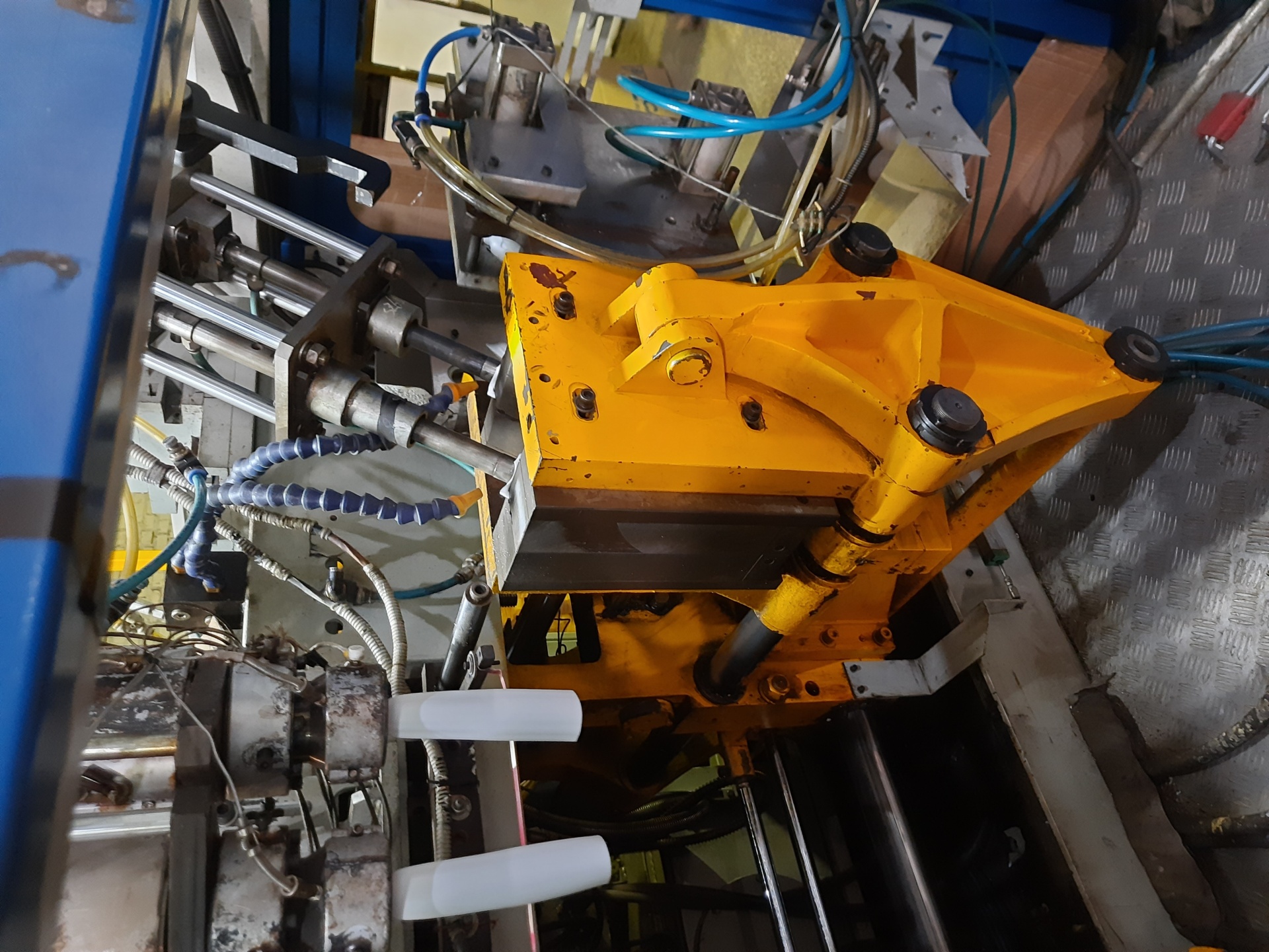 Установлены две двухместные пресс-формы, изделие - флакон с наклонным горлом 1л "Утенок".