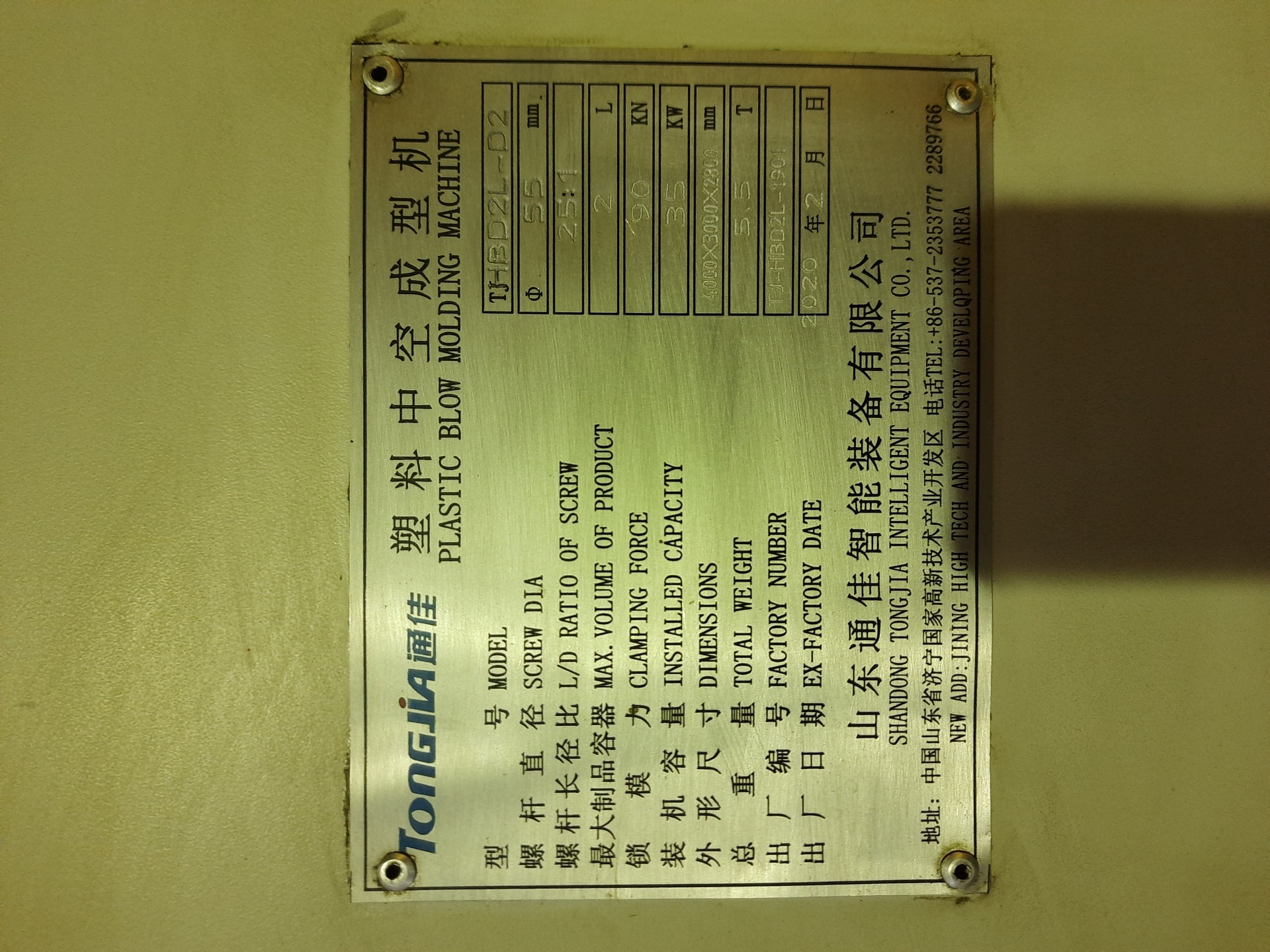 Экструзионно выдувной станок китайского производства Tongjia HBD2L.