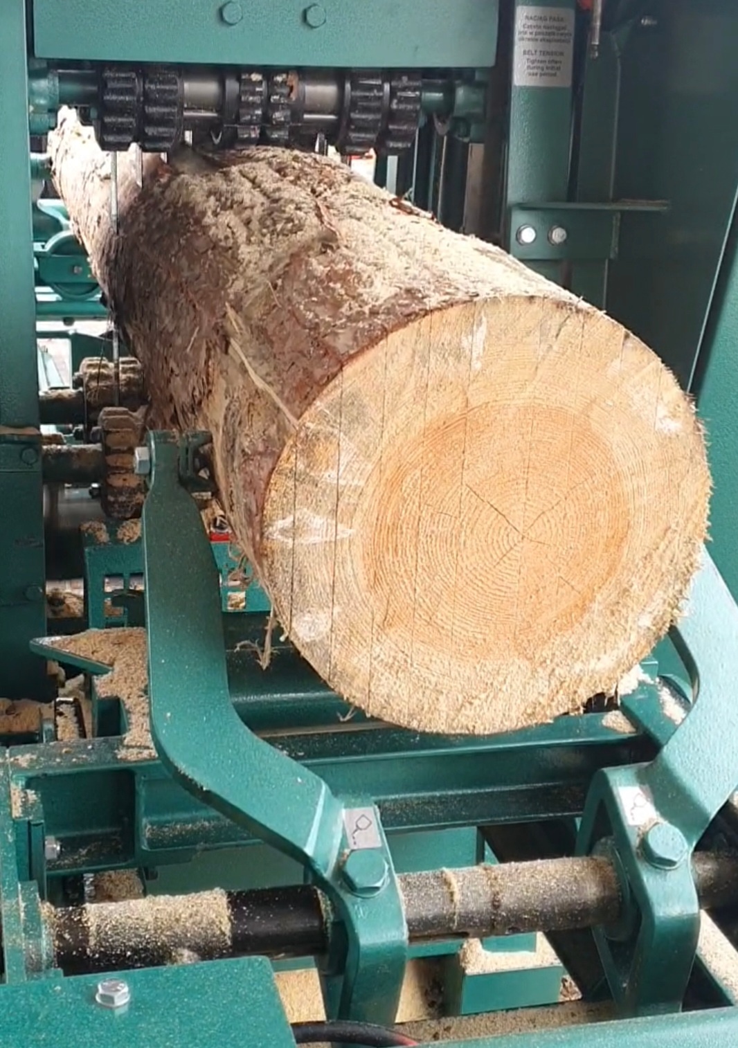 Вона розпилює колоди та плахи на дошки вертикальними пилами.