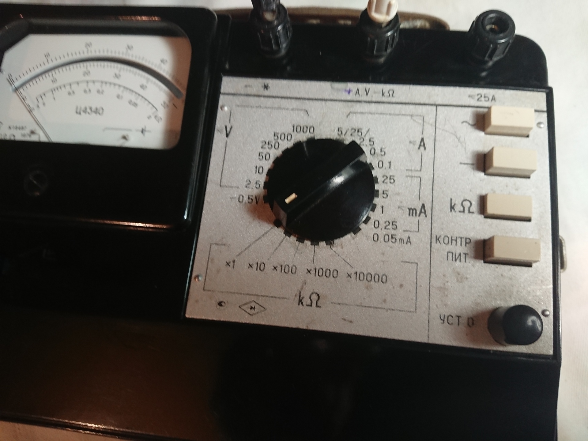Комбинированный переносный электроизмерительный прибор Ц4340 с защитой от электрических перегрузок предназначен для измерения силы и напряжения постоянного и переменного тока синусоидальной формы частоты от 45Гц до 10к Гц и сопротивления постоянному току.