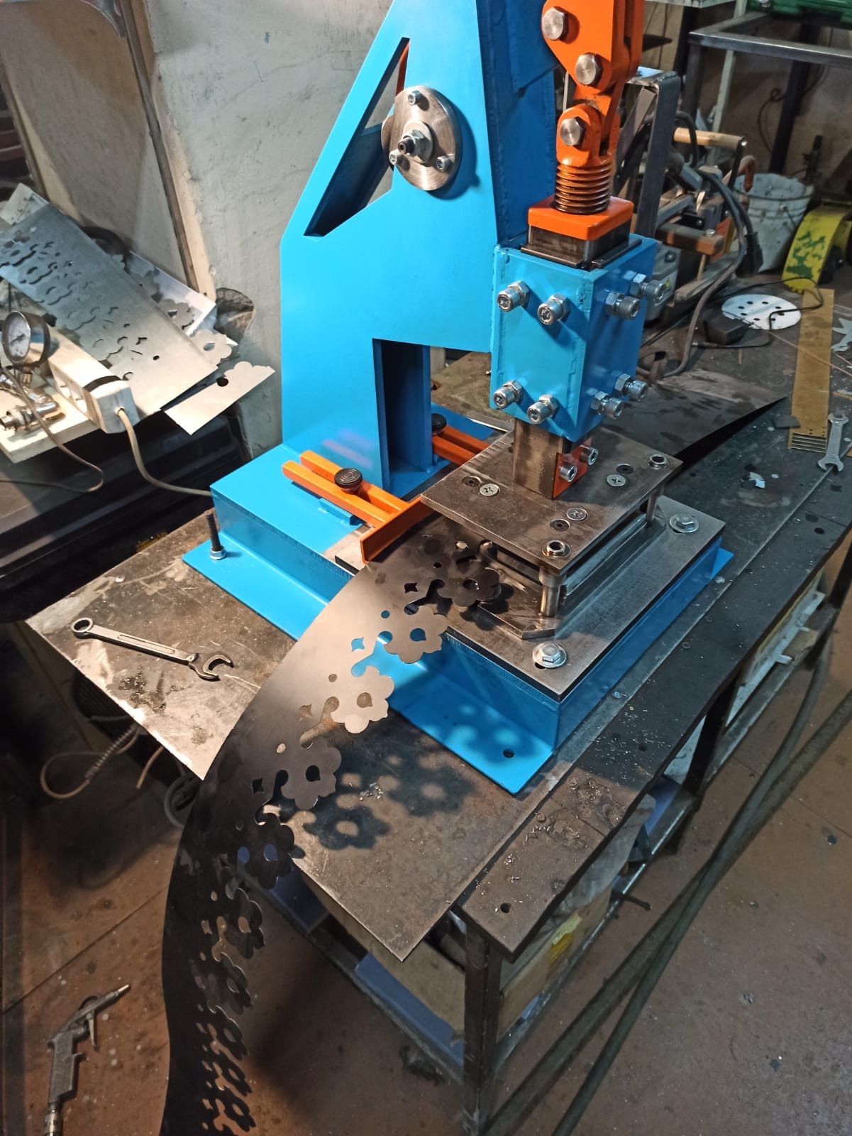 Пресс запросто вырубает/прорубает металл и другие материалы. На данном прессе может работать как мужчина, так и женщина.