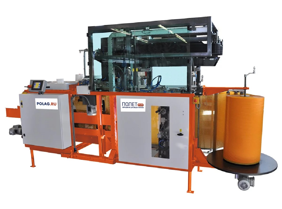 Упаковочная машина малых сеток предназначена для фасовки готовых малых упаковок с овощной продукцией в сетку-мешок до 25 кг. Количество упаковок, загружаемых в сетку-мешок задается в настройках.