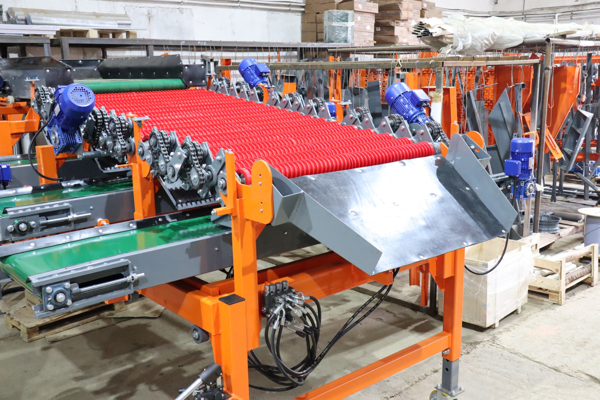 МКВ-412 используется для бережной и качественной сортировки овощей на 4 фракции по размеру.. Калибровка осуществляется благодаря прохождению продукта по рабочей поверхности из спиралевидных полиуретановых валов с зазорами заданного размера между валами.