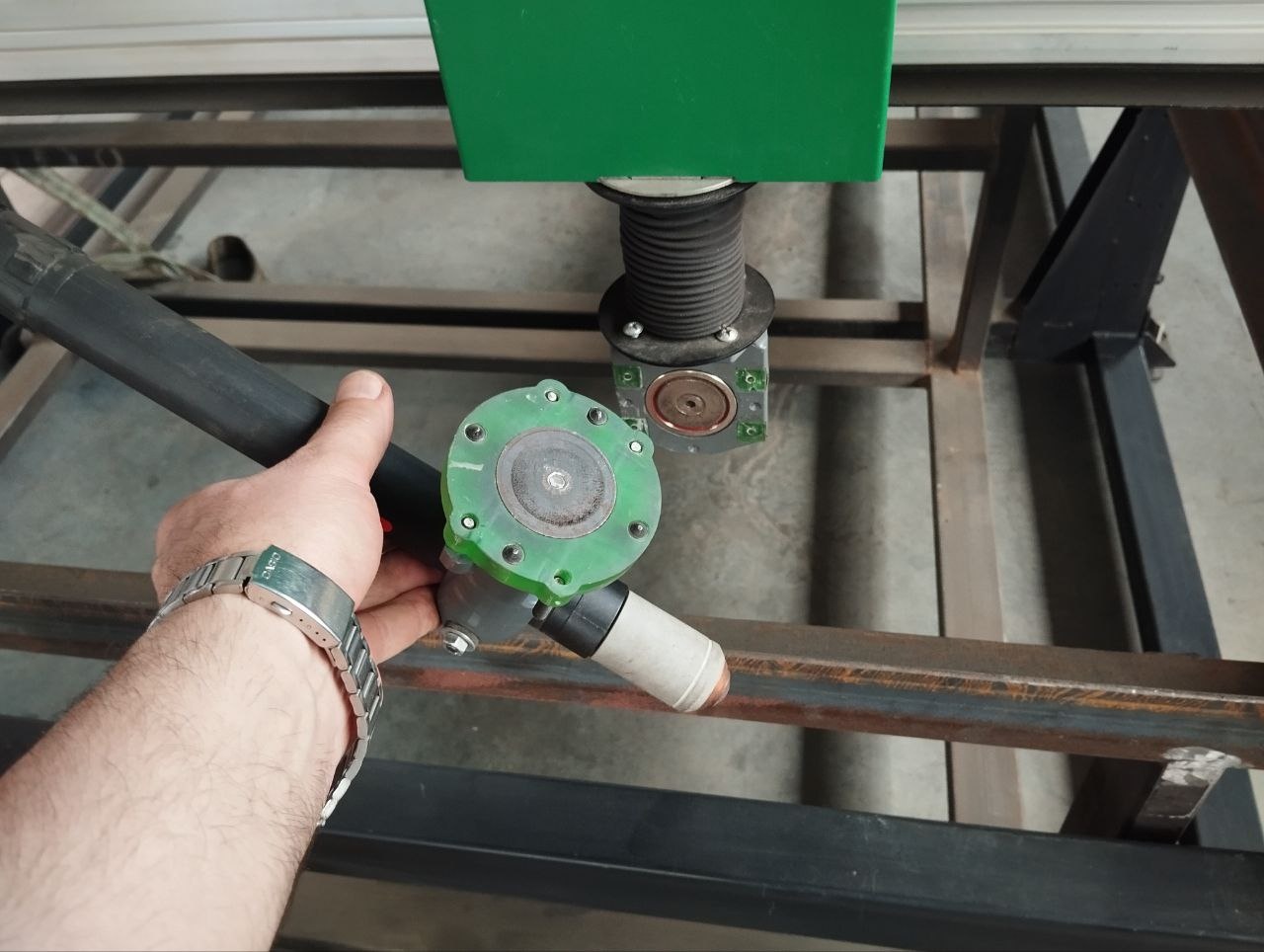 - Удобство эксплуатации: держатель резака с магнитным креплением и функцией регулировки наклона резака в двух плоскостях для точной настройки. Есть датчик столкновения для предотвращения повреждений.