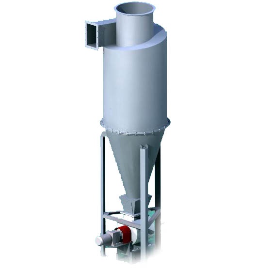 Аэродинамический циклон состоит из корпуса, который в верхней части посредством улитки переходит в выходной патрубок, а нижней части соединен с конусным днищем с бункером. На выходе бункера устанавливают: шиберные заслонки, затвор-мигалки, пылевые затворы, затворы "Хлопушка" и другие виды выгрузных устройств.