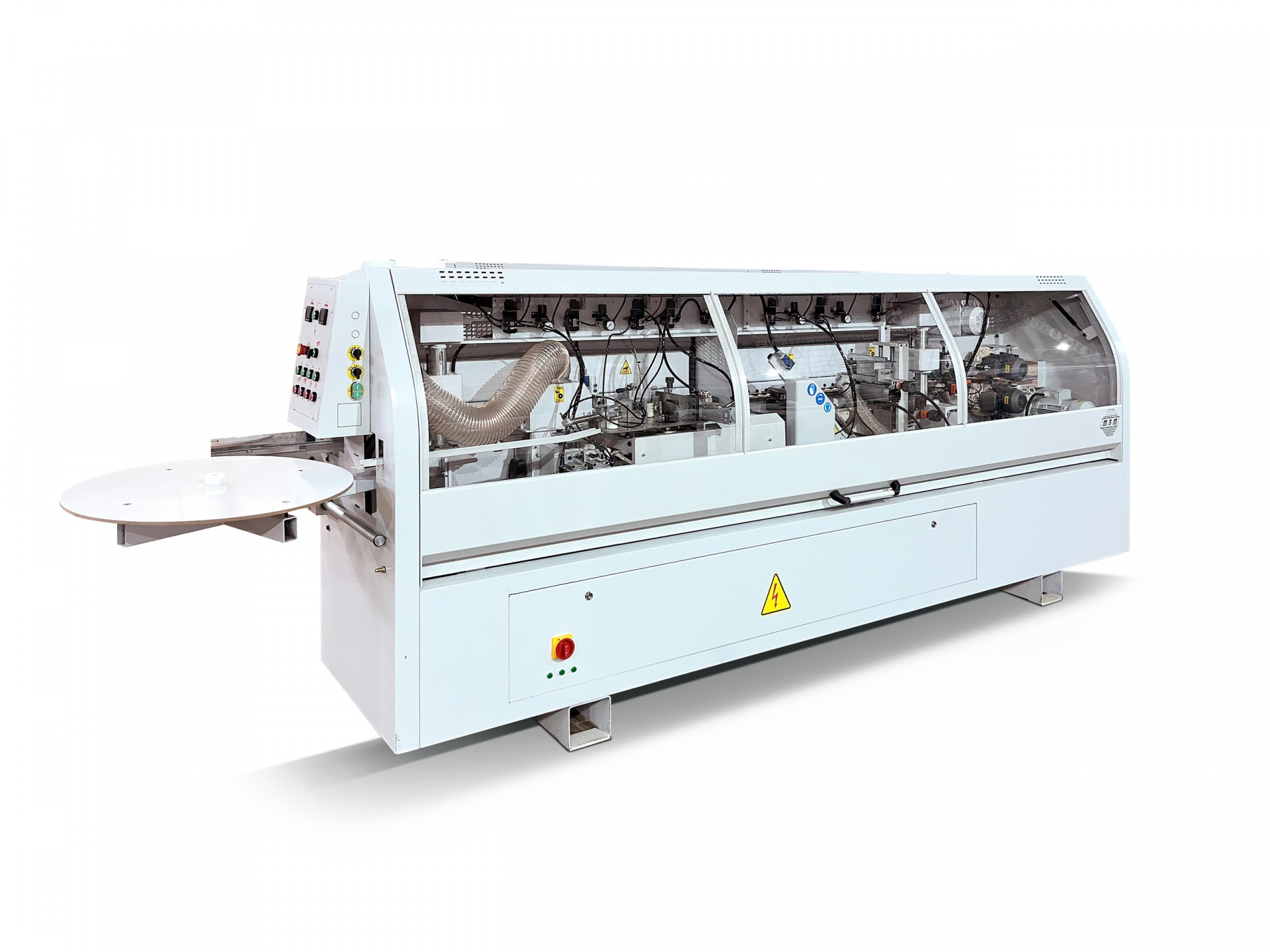 Компактный кромкооблицовочный станок с узлом предварительного фрезерования (прифуговка) предназначен для облицовывания прямолинейных кромок плитных материалов рулонными кромками АБС, ПВХ и полосовым кромочным материалом толщиной до 5 мм.