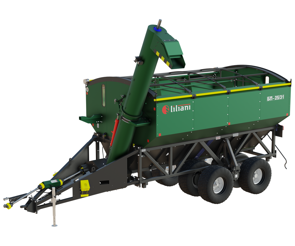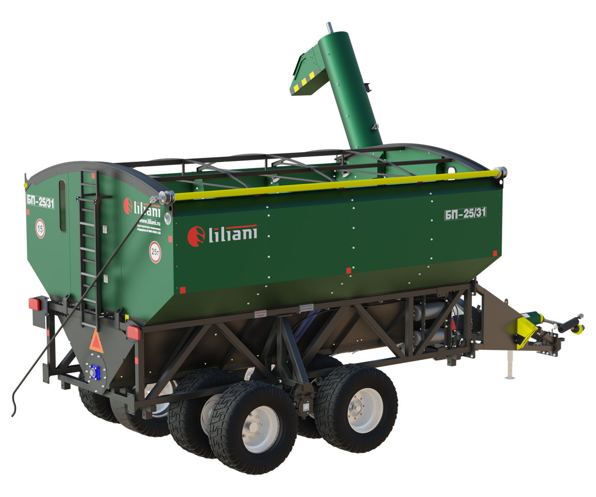 Бункер БП-25/31 (8 колес) ЛИЛИАНИ наилучшим образом сбалансирован в соотношении цена/качество, один из флагманов наших продаж. Грузоподъемность в 25 тонн совпадает с востребованной грузоподъемностью грузовиков-зерновозов и хорошо соотносится с кратностью емкости приемных бункеров большинства популярных комбайнов.