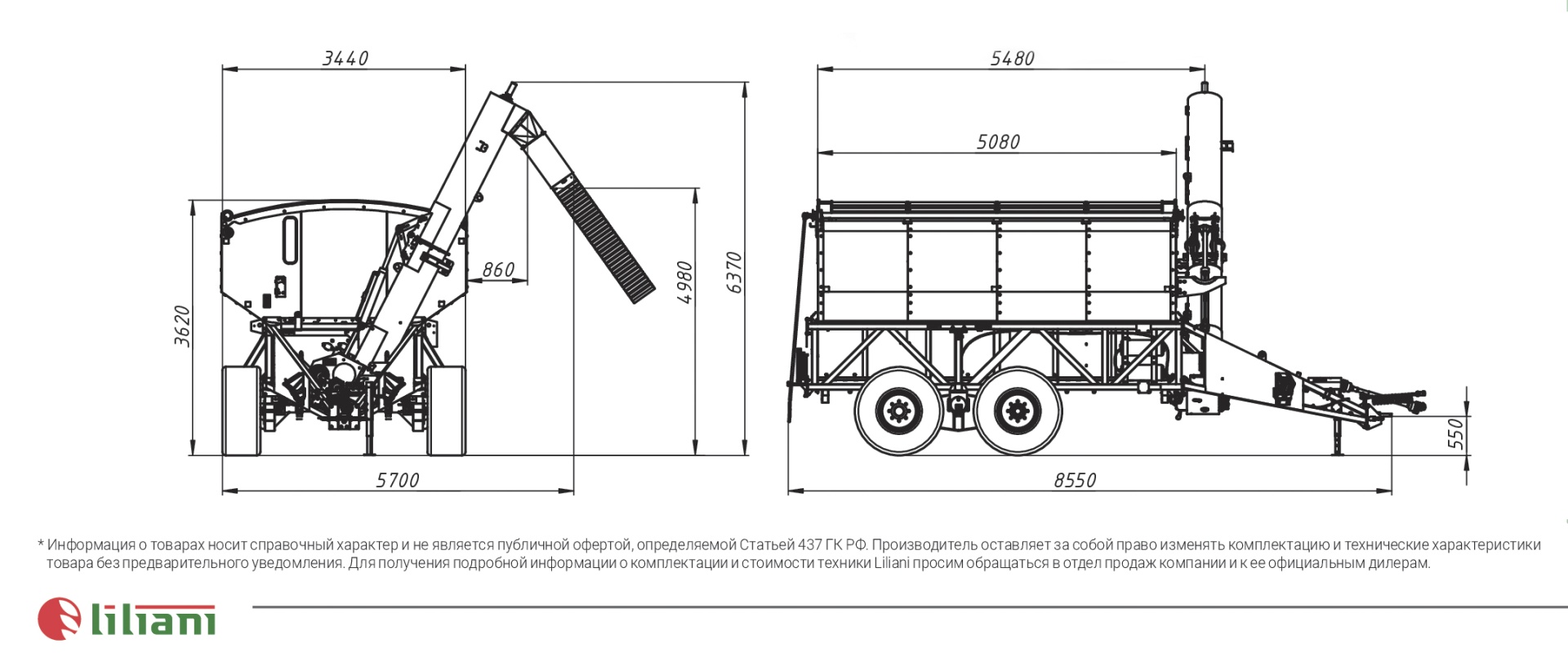 | Габаритные размеры в рабочем положении (разгрузочный шнек раскрыт): длина, (мм) | 8 550 |
