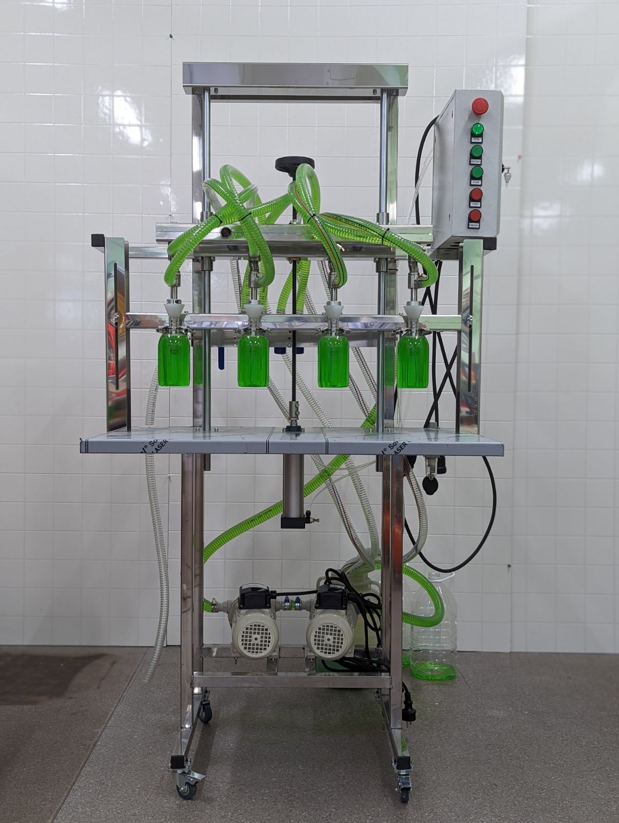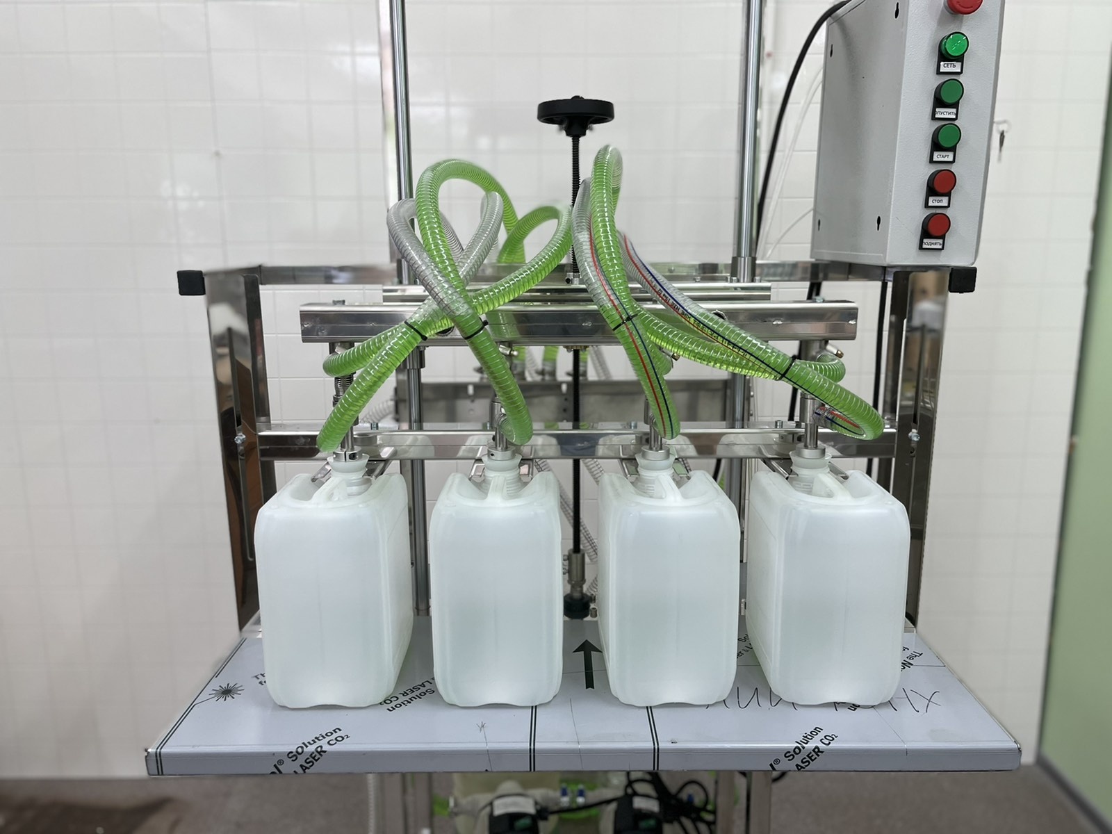 Подъем разливочных головок осуществляется пневматикой, для работы нужен компрессор (приобретается отдельно).