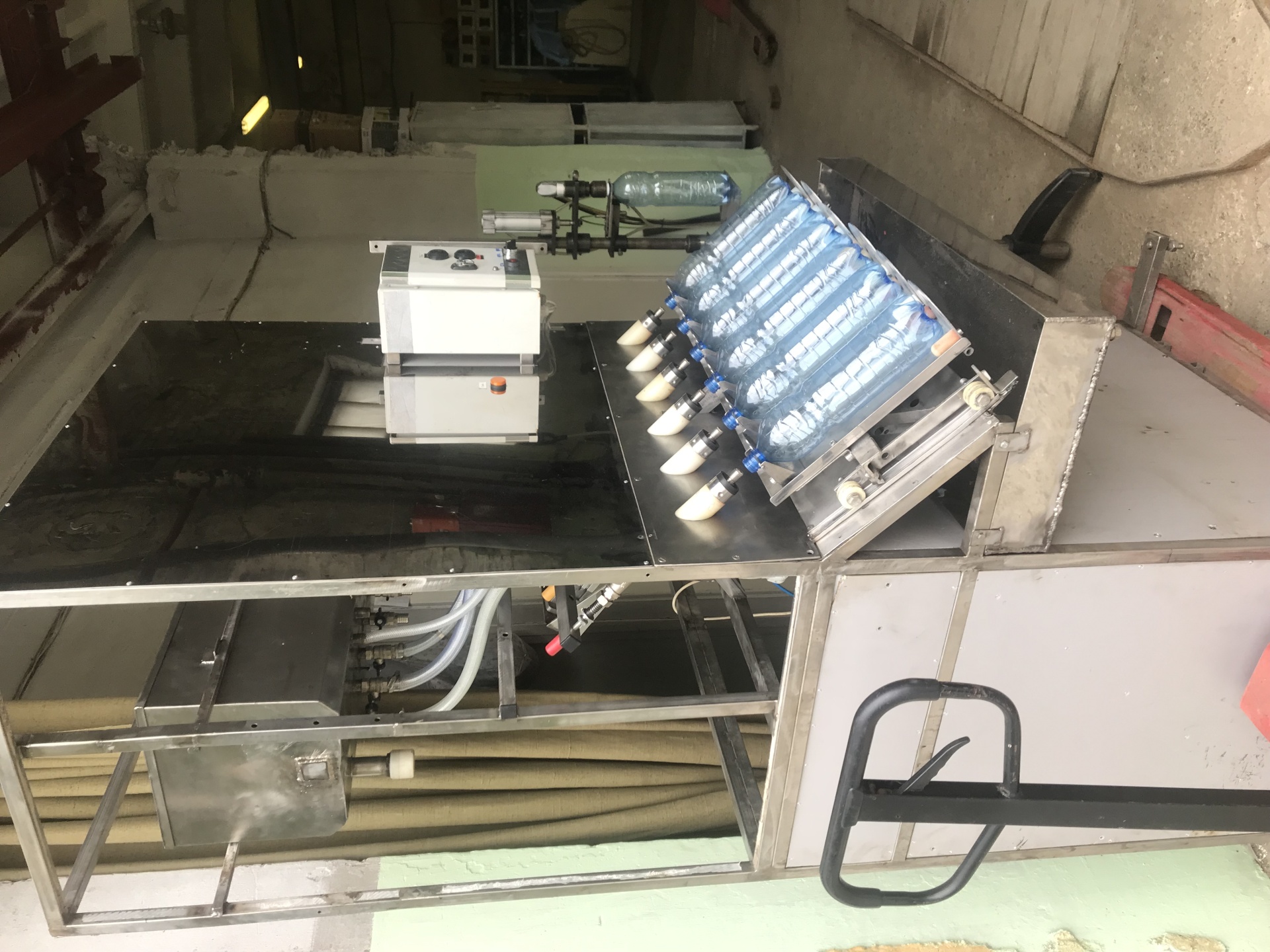 Полуавтомат для розлива негазированных жидкостей объёмом от 0,5 л до 2 л. Регулировка времени налива по таймеру.