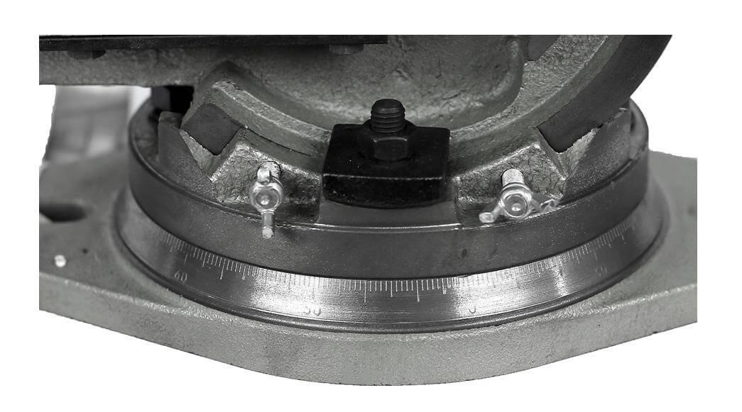 - Поворотная база корпуса градуирована по шкале с шагом в 1 градус. Шкала определена гравировкой, что обеспечивает качество и длительность эксплуатации;