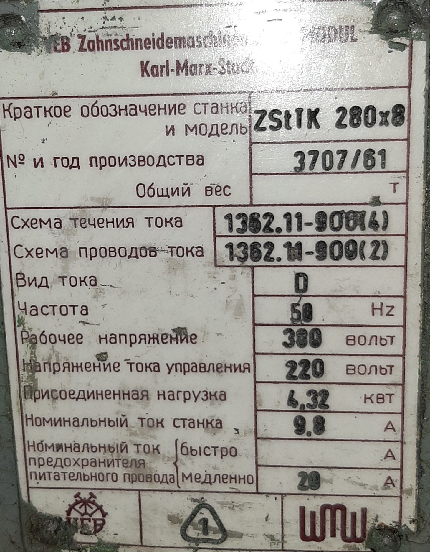 Зубострогальный станок WMW KARL-MARX-STADT ZSTTK 280x8 - Продам в Нытве