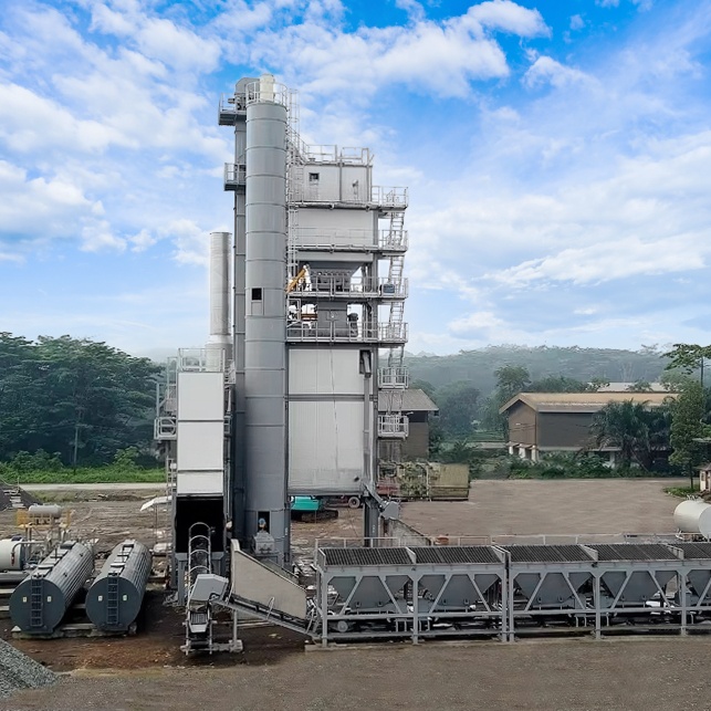 Асфальтобетонный завод модели БМЗ-160, производительностью 160 тонн готового асфальта за час работы.