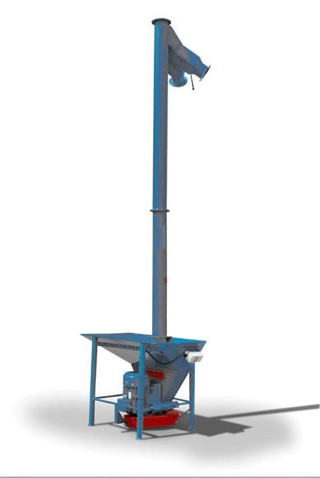Транспортер для вертикальной подачи состоит из приемного бункера и вертикального винта в трубе с приводом. Реже перегрузчик комплектуется специальным коротким горизонтальным винтом с отдельным приводом.