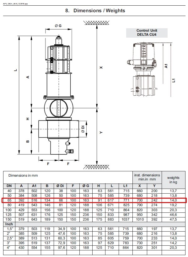 Двухседельный клапан с защитой от смешивания (double seat mixproof valve) APV Delta DA34-65 с контроллером CU43-M-AS-I extended.