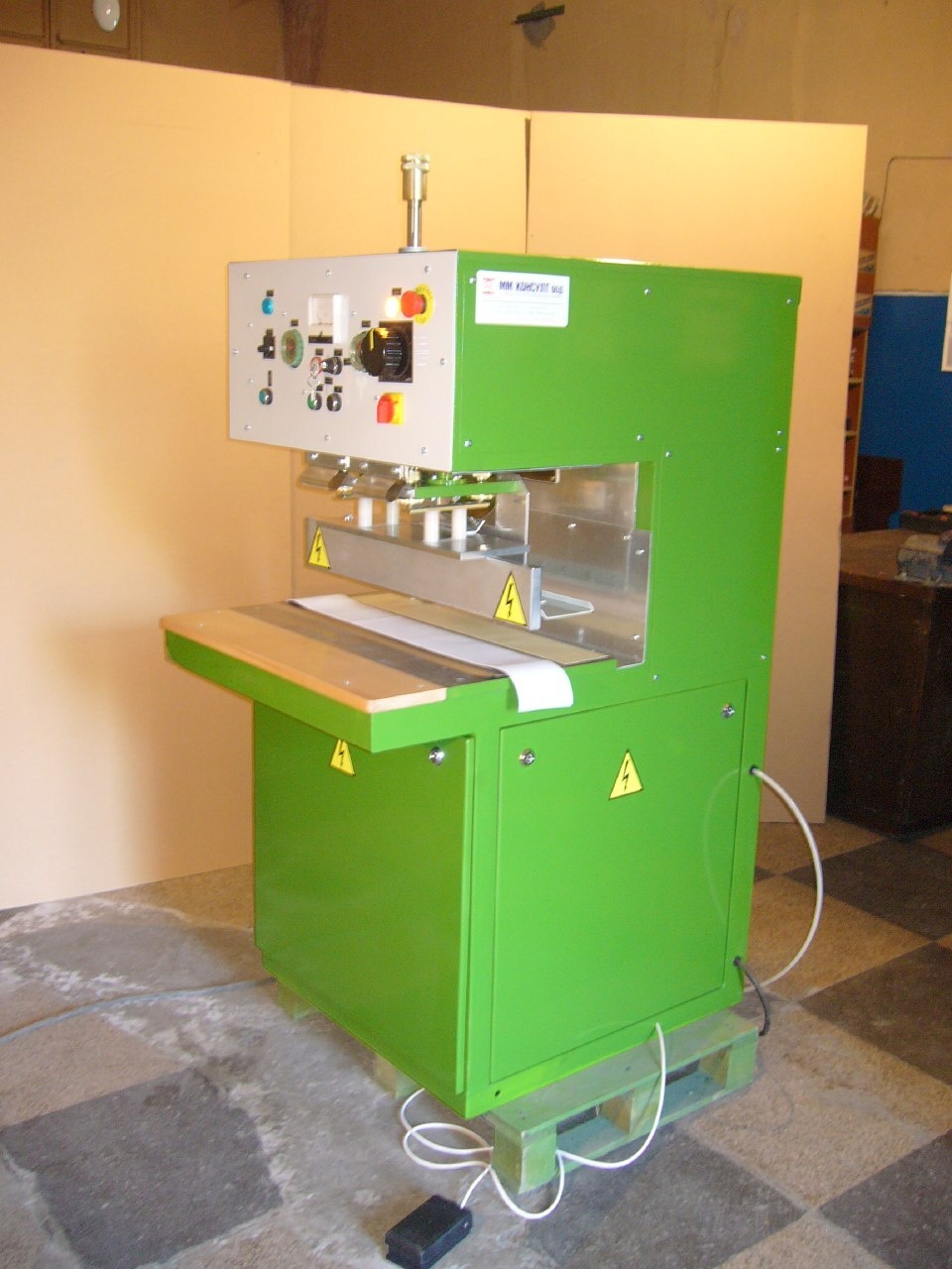 Можно использовать для производства автотенов, палаток, шатров, лодок, плотов, шевроны, различного вида упаковки,натяжные потолки, канцелярских товаров(обложки вкладыши) надувные игрушки, спасательные круги, шары, мячи и т.д. Все, где используется ПВХ. МНОГОФУНКЦИОНАЛЬНЫЙ СТАНОК ШИРОКОГО ПРОФИЛЯ.