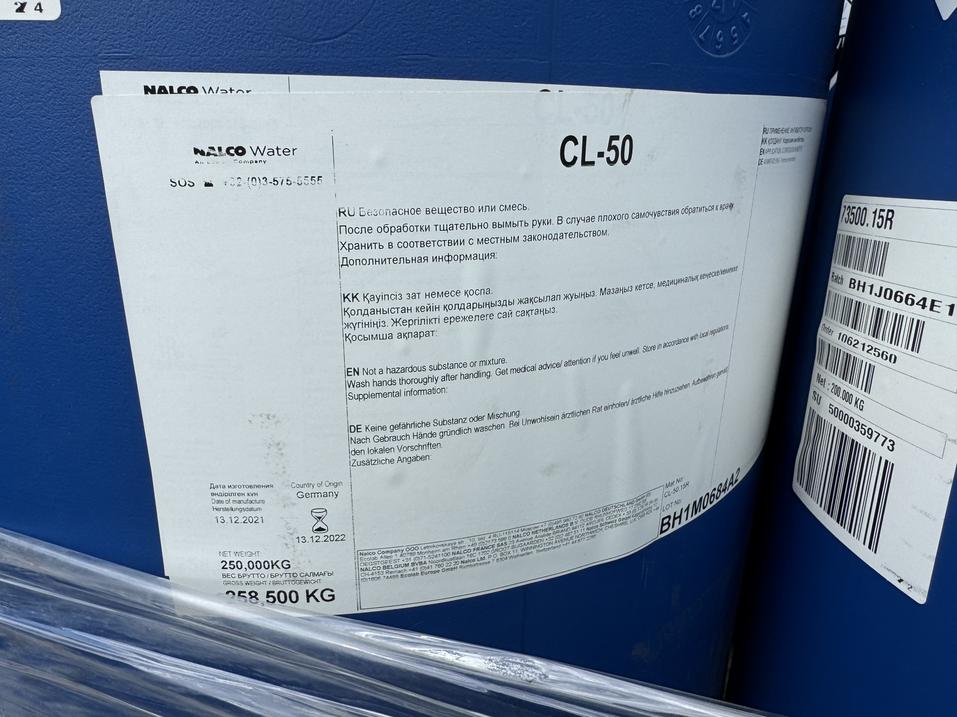 Продукты используемые при производстве CL-50 согласно Европейским стандартам разрешены для обработки питьевой воды. (EN1210 и EN1212).