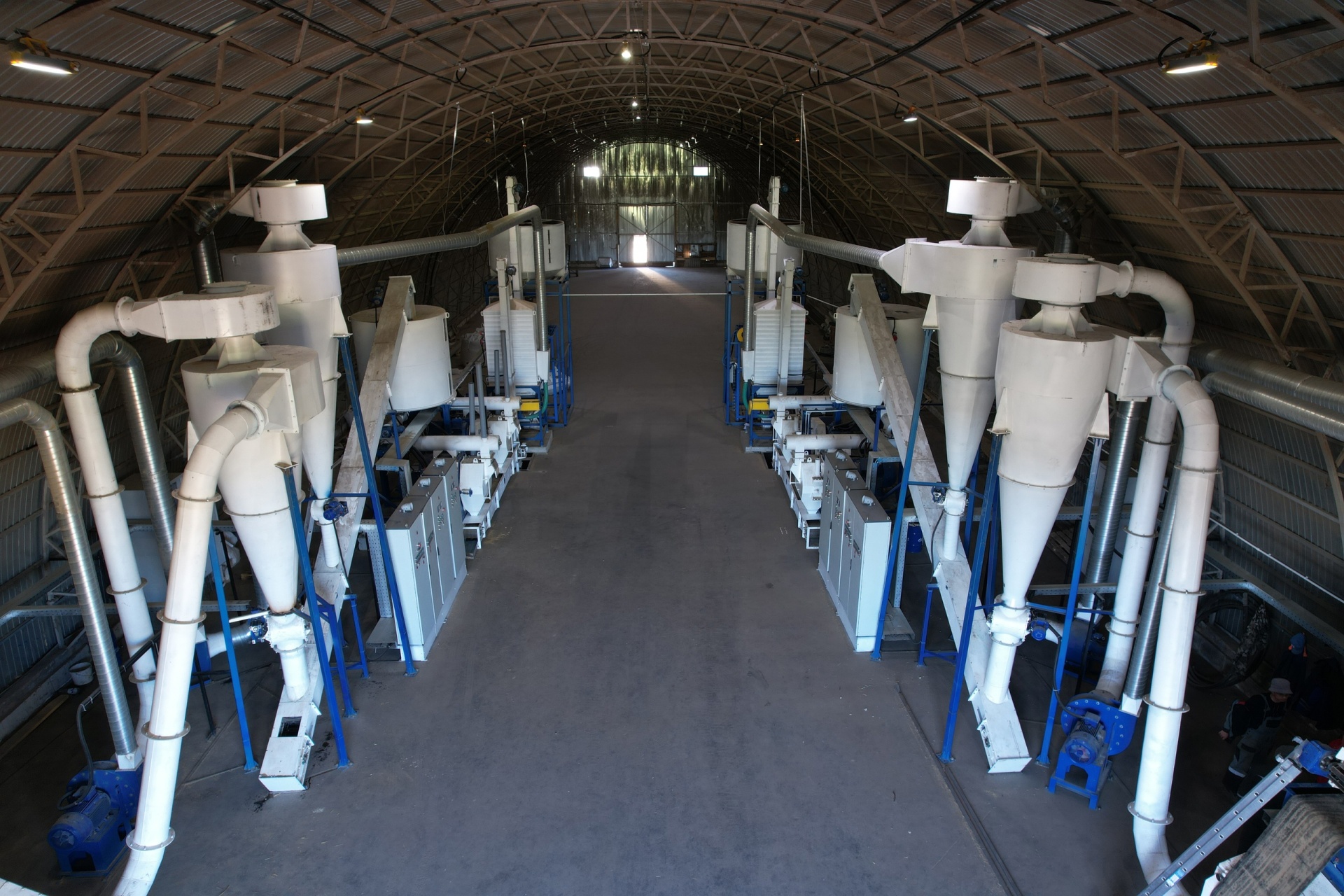 Входящее сырье: сено, солома, шелуха риса, лузга подсолнечника, пивная дробина, зерно, зерноотходы, початки и стебли кукурузы и т.д. Получаемый продукт: кормовые гранулы, комбикорм, топливные гранулы.
