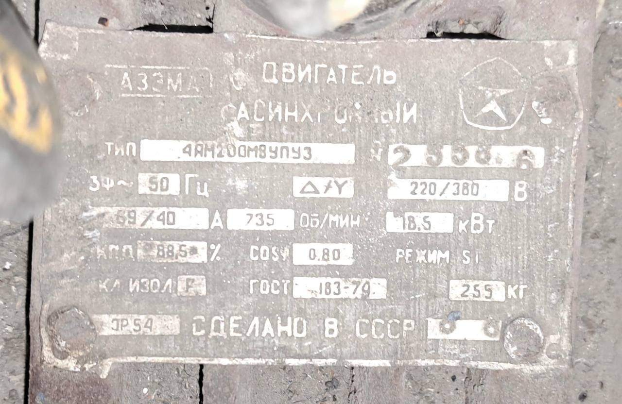 Двигатель 4АМ 200М8 18,5 кВт, 735 об/мин, 220/380В, диаметр вала 60 мм, на лапах. В исправном состоянии, шумит подшипник - 40000 руб.