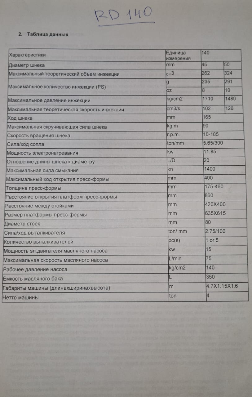 Термопластавтомат RD 140