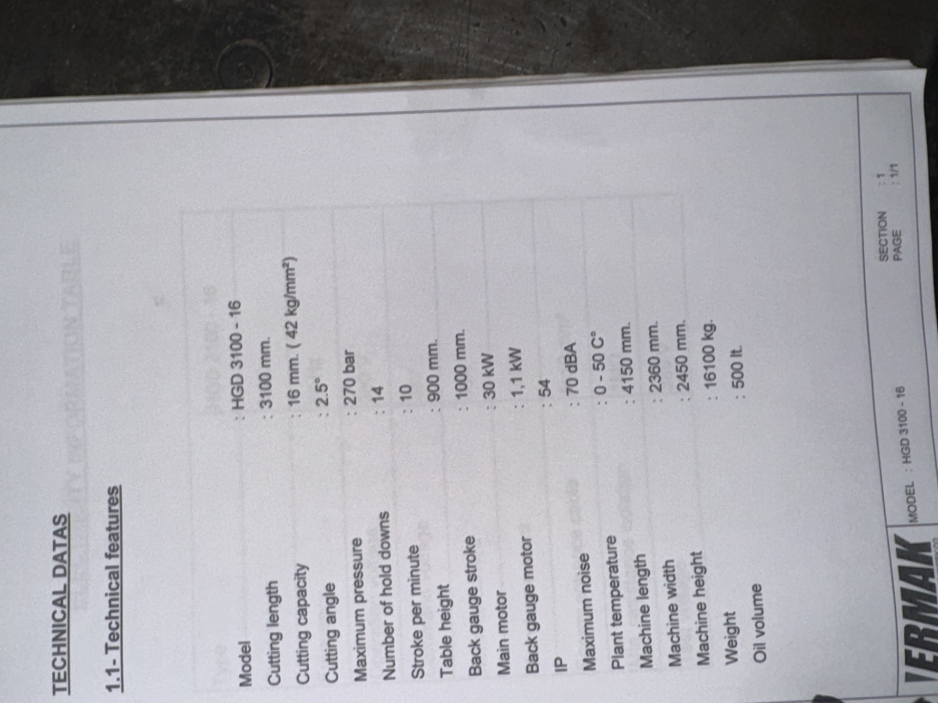 Length backgauge: 1000mm