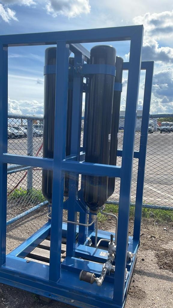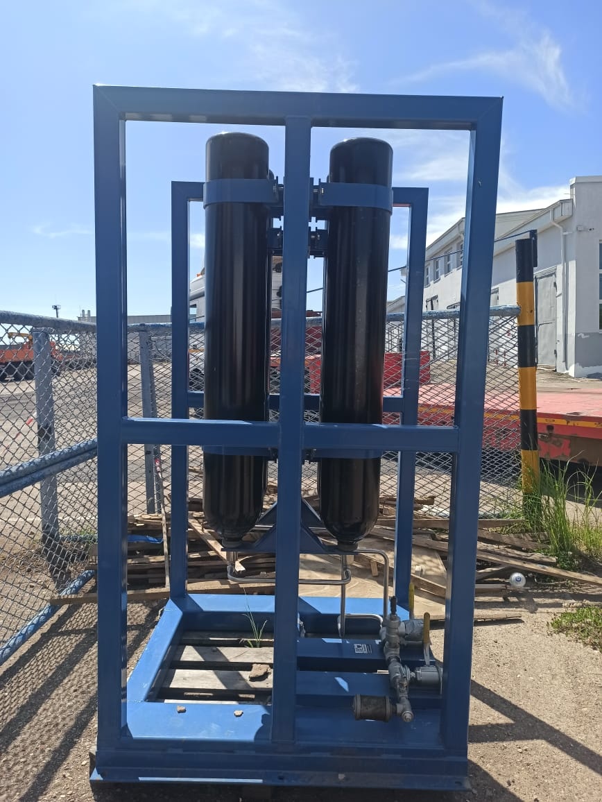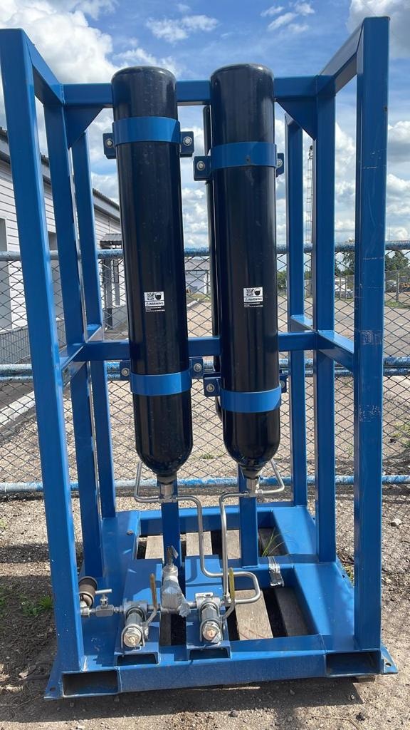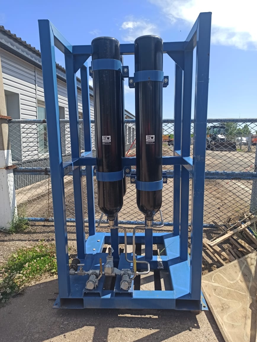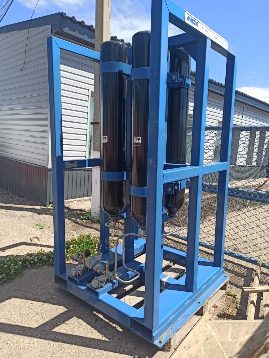В состав Модуля входят 4шт воздушных баллона высокого давления емкостью 50 л/баллон и расчетным давлением 200 атм/баллон. Установка собрана в металлическую раму с пазами для вилочного погрузчика для удобства перемещения.