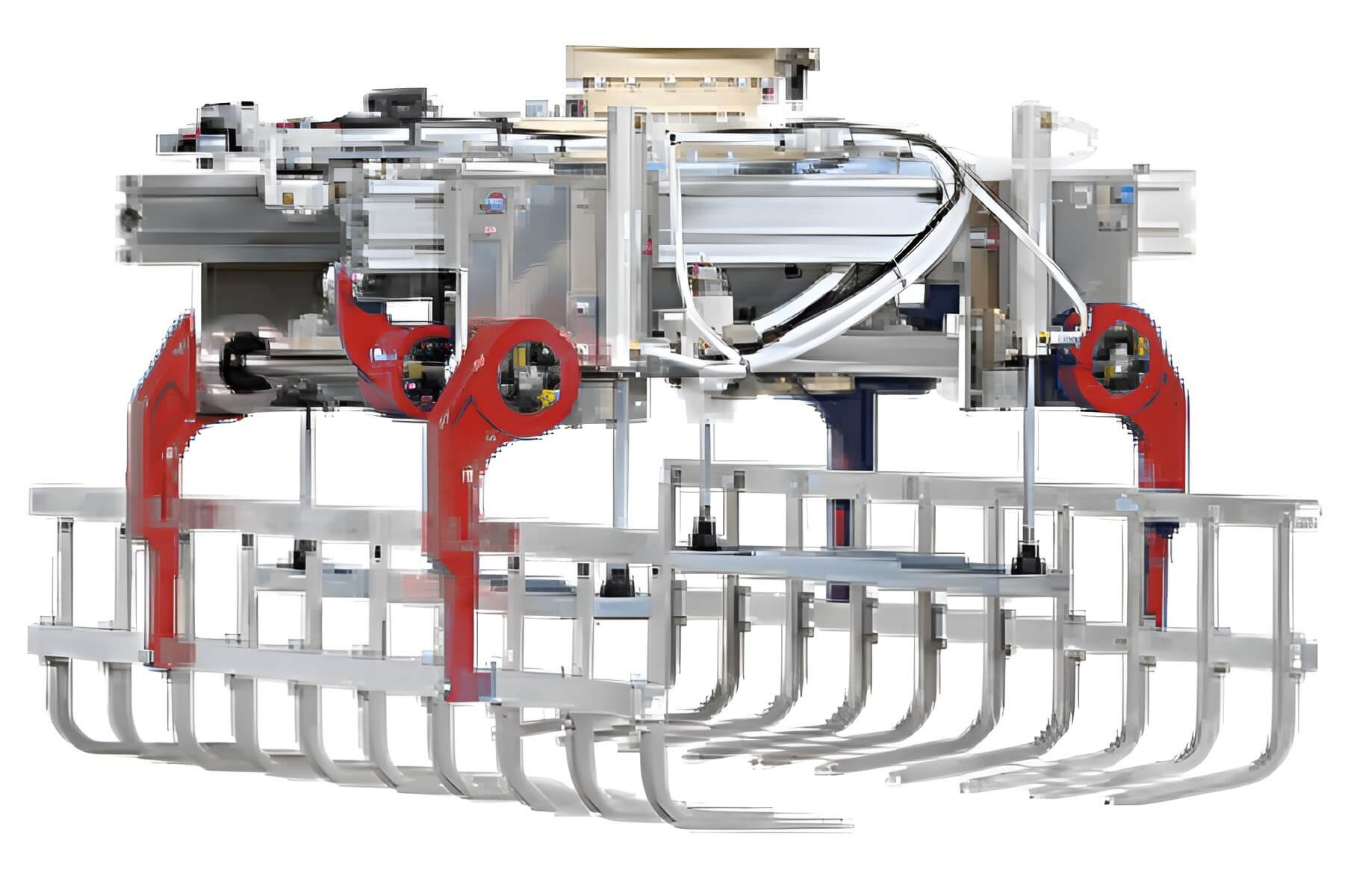 Клещевой захват для мешков на промышленный робот под конвейер-рольганг (ролики Ø50 мм, шаг 90 мм)