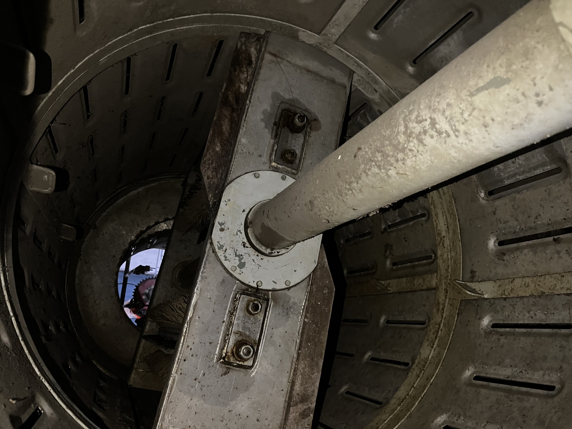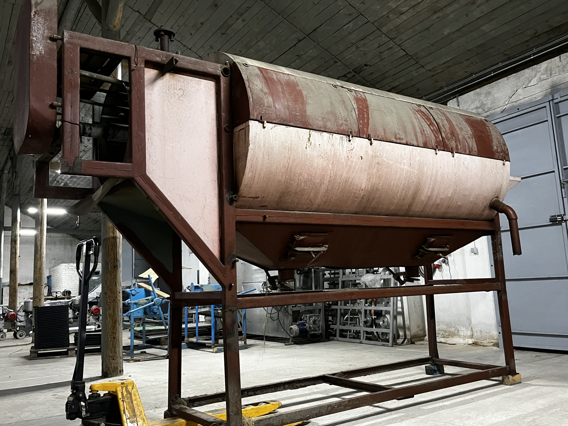 Секция ополаскивания - ступенчатый цилиндр. Для транспортировки сырья внутри конусной части барабана имеется винт.