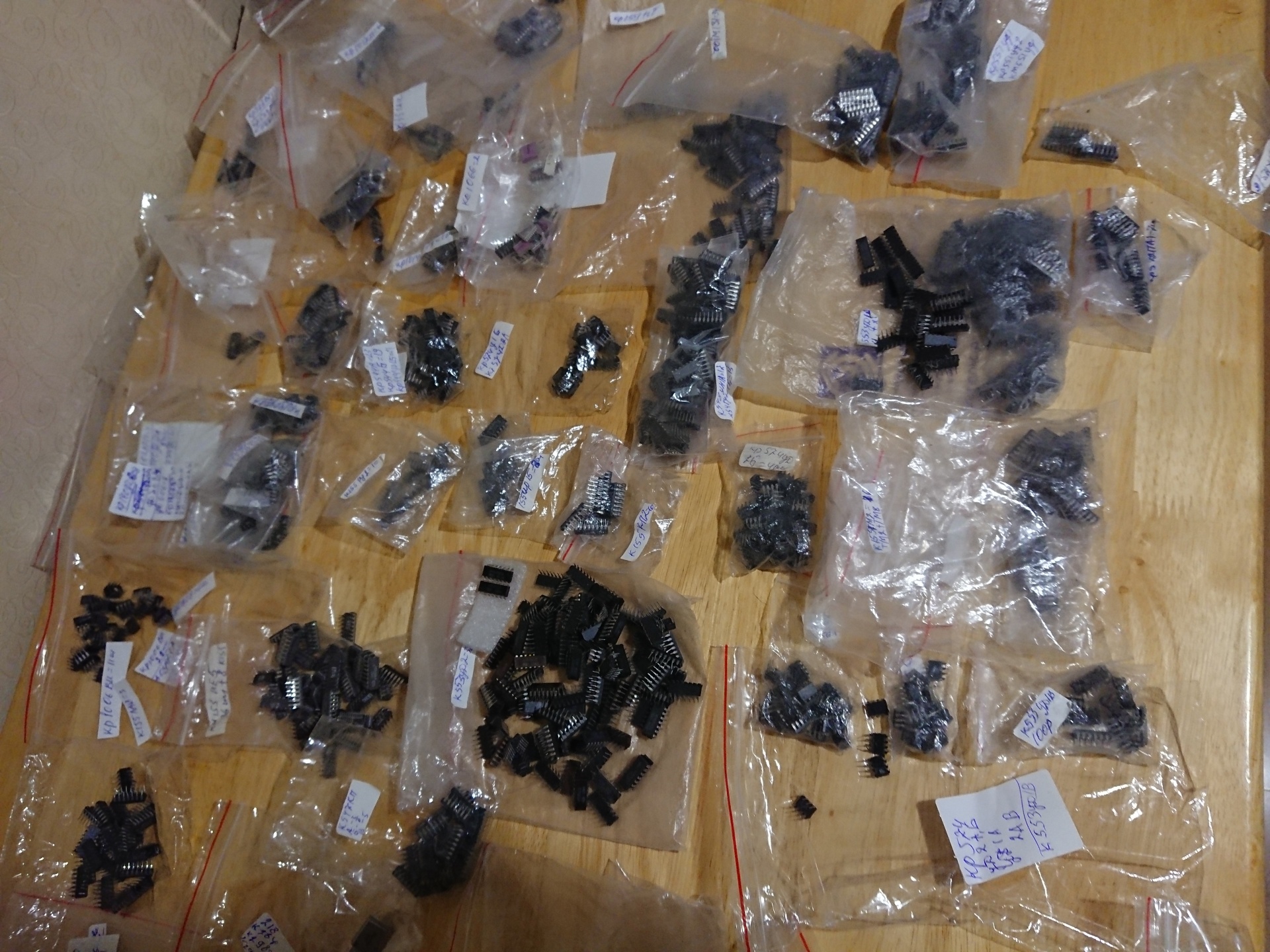 Есть мешочек не понятные и паянные микросхемы сняты с разных резервных плат.- они как ПРЕЗЕНТ. последние фото на белом