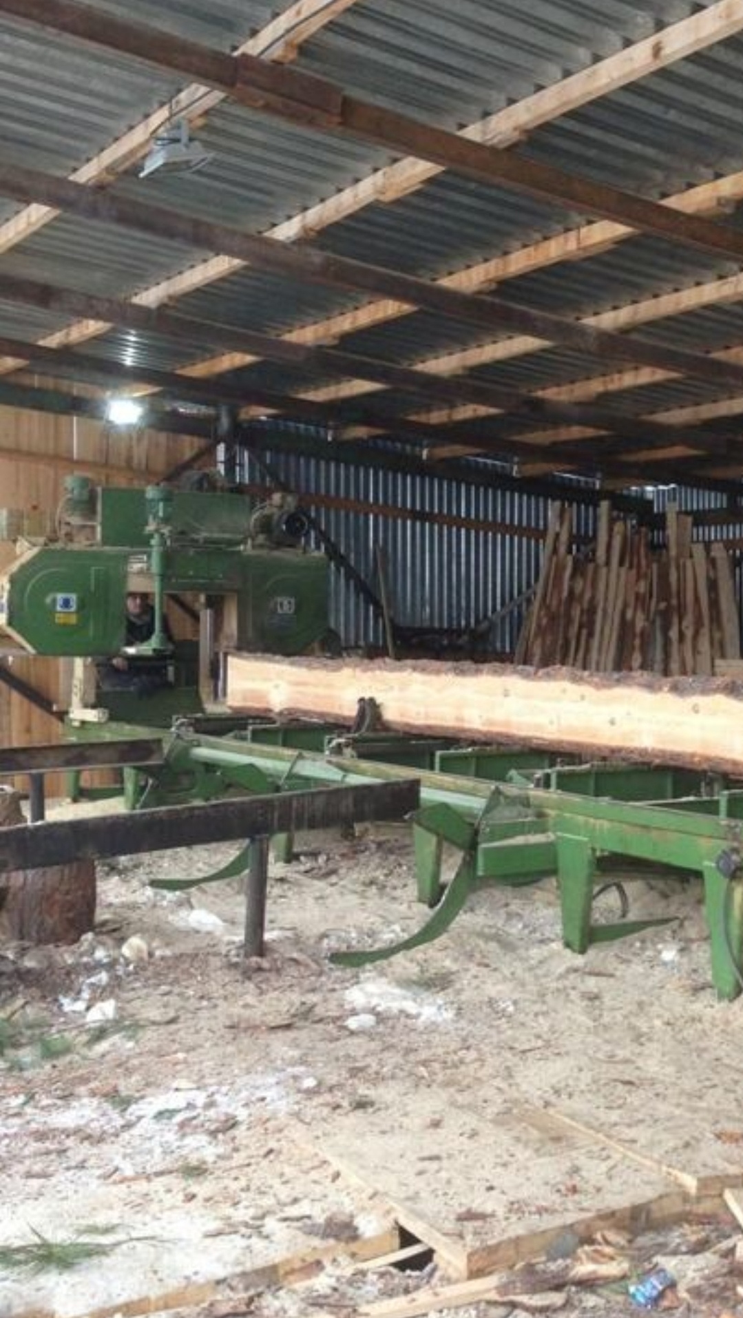 Гидравлическая ленточная пилорама Pezzolato timber queen 700 в хорошем состоянии.Диаметр обработки до 900 мм.,дляна рельсов 9 метров,мощность 18,5 квт.,функции гидравлики - перемещение пильной рамки,загрузка бревна,кантование,зажимы,дебаркер.Ширина ленты до 54 мм.