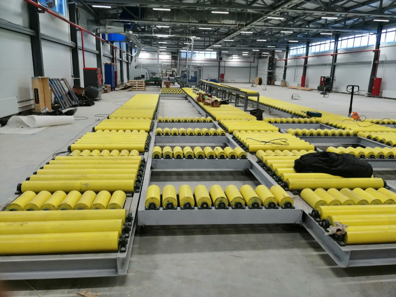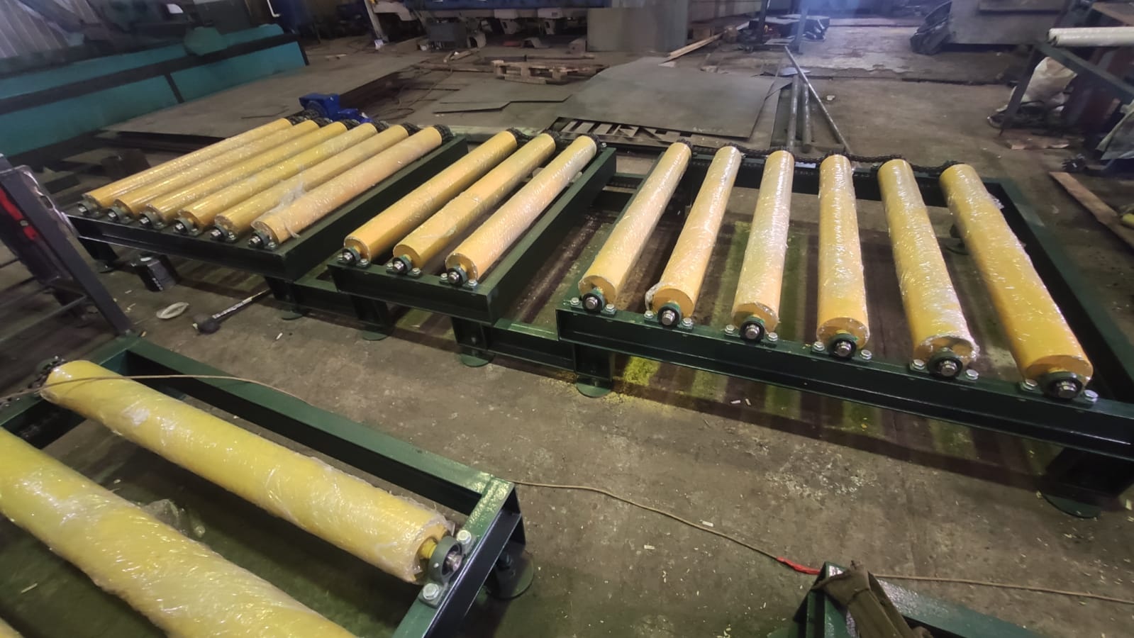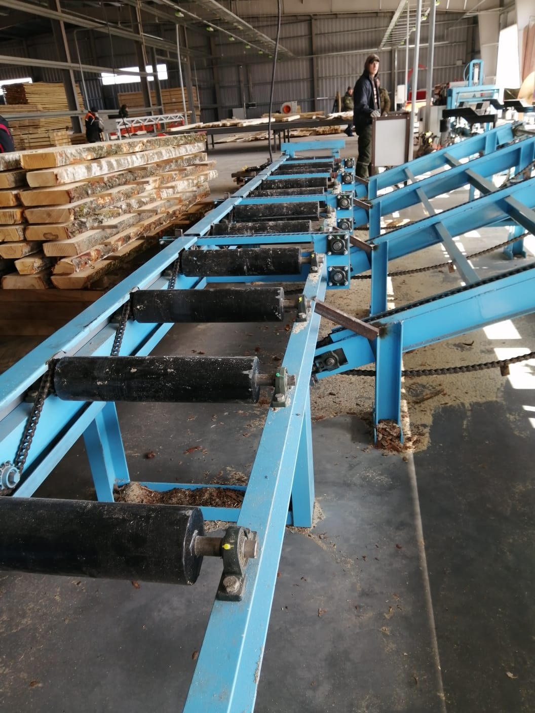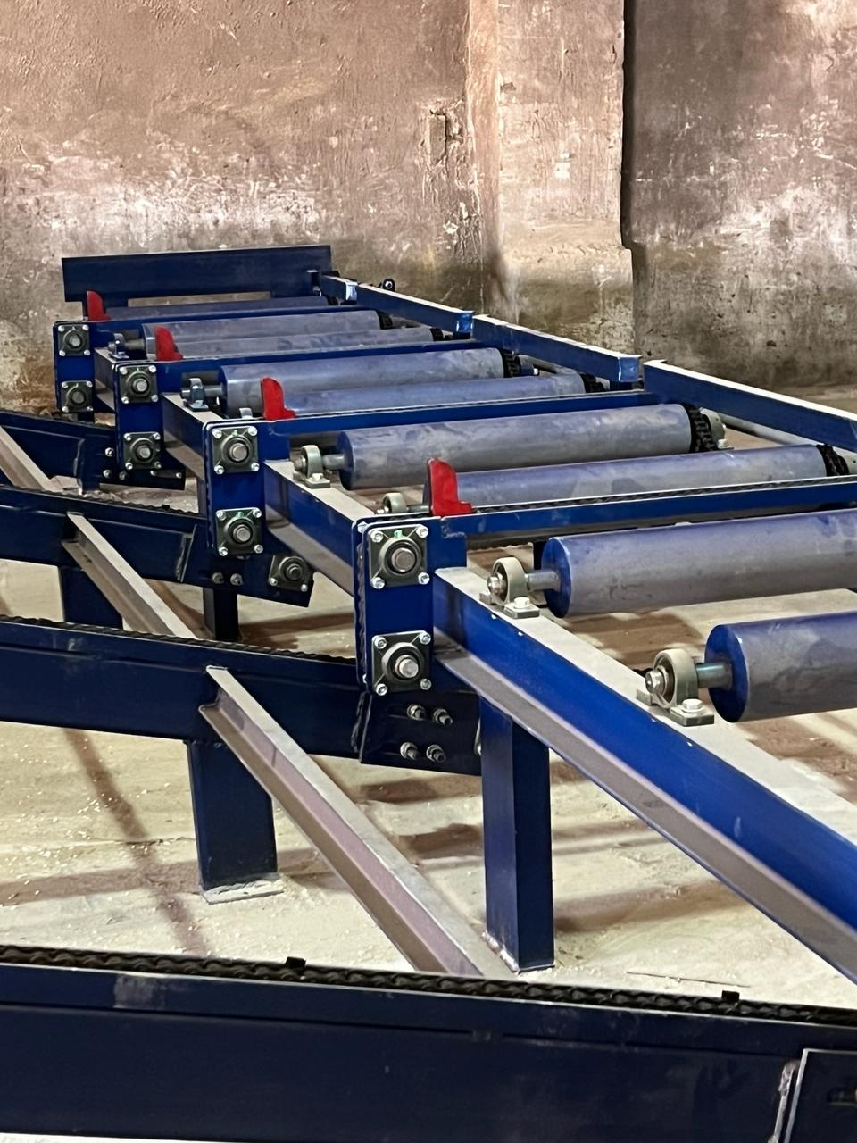- рольганг приводной с коническими роликами(для перемещения круглого леса)