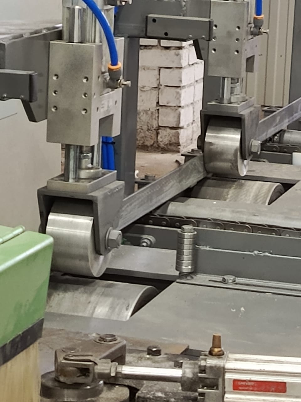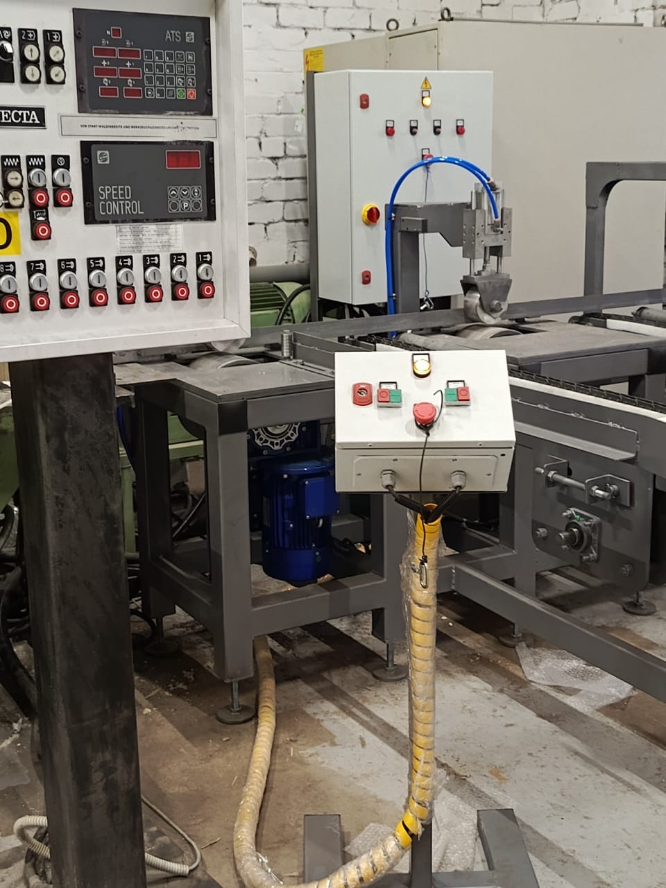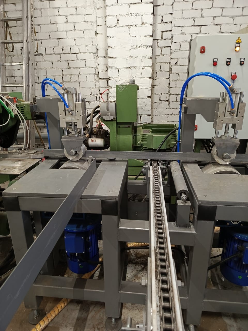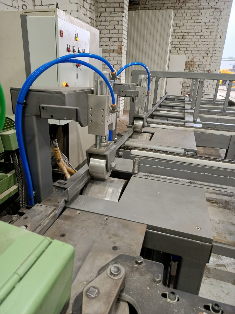 После обработки заготовки поступают на приемный рольганг с последующим перемещением на поперечный транспортер для готовой продукции, который обеспечивает первичную буферизацию заготовки после обработки.