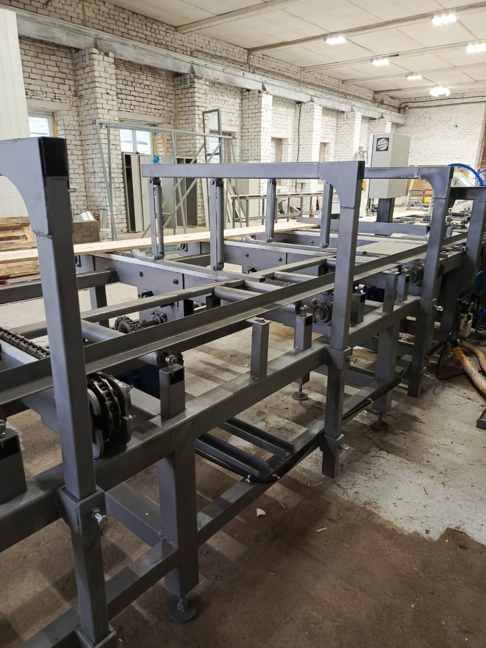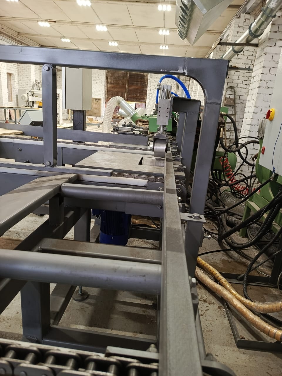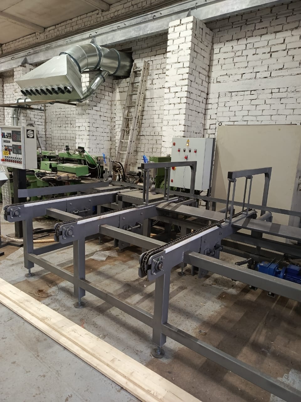 Система предназначена для организации автоматической подачи, разгона до номинальной скорости и приема обработанной заготовки из 4-х сторонних станков.