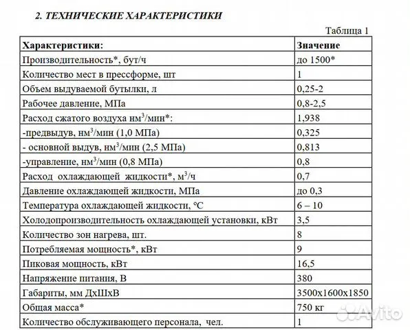 Объем выдуваемой бутылки - 0,25 - 2,00 л.