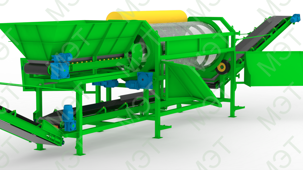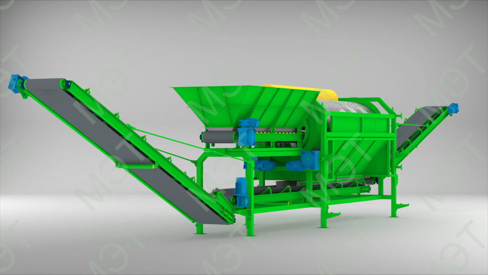 - Регулируемые обороты просеивающего барабана и скорости подачи питателя.