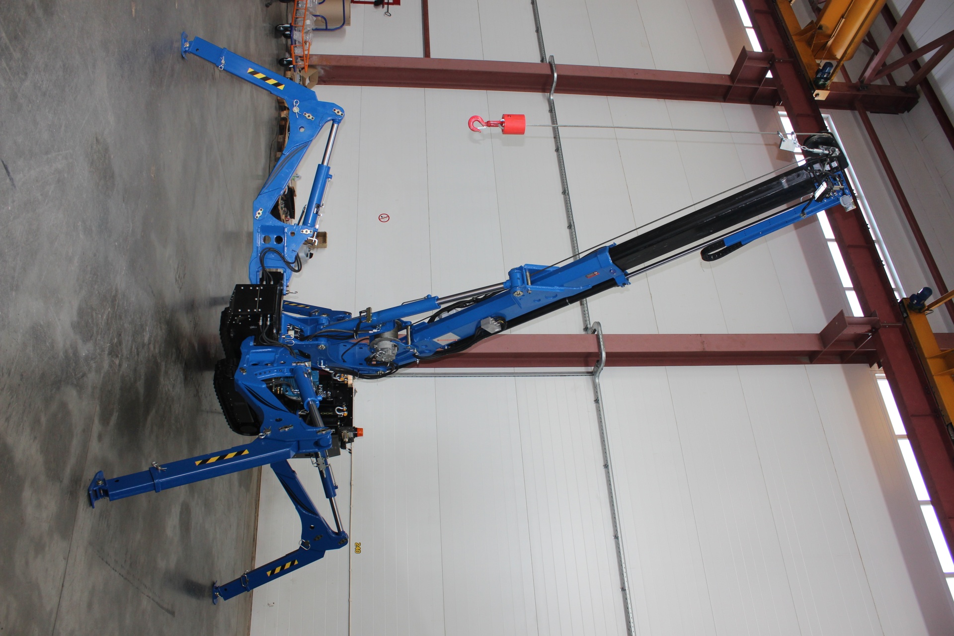 РОИН К-100 может работать и в помещении: электрический двигатель обеспечивает выполнение работ без выбросов газа, а ширина 710 мм позволяет провозить РОИНа в стандартный дверной проём. Для предотвращения несчастных случаев с опрокидыванием из-за перегрузки крана установлена специальная система безопасности.
