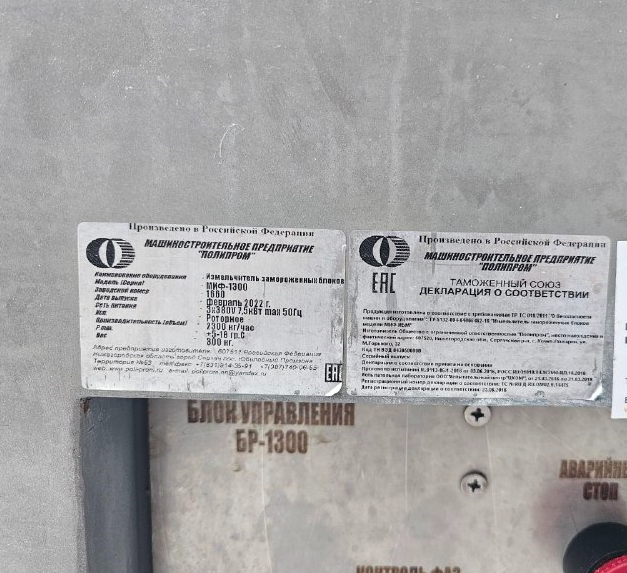 Блокорезка МИФ-1300 (барабанно-роторного типа) предназначена для измельчения замороженных продуктовых блоков (мясных, жировых, творожных, шоколадных и т.д.) на кусочки/ломтики толщиной 10-20 мм и размером примерно 95х95х10 мм.