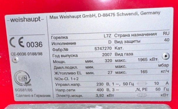 В продаже дизельная горелка Weishaupt Monarch L7Z сполнение D