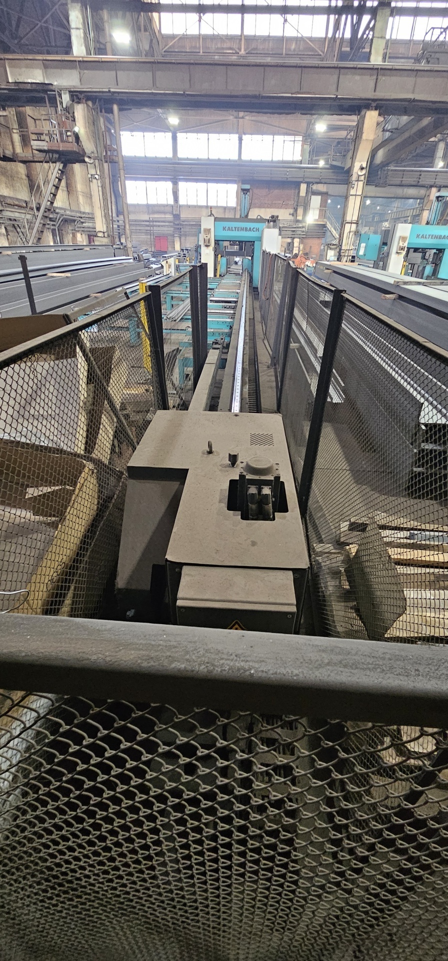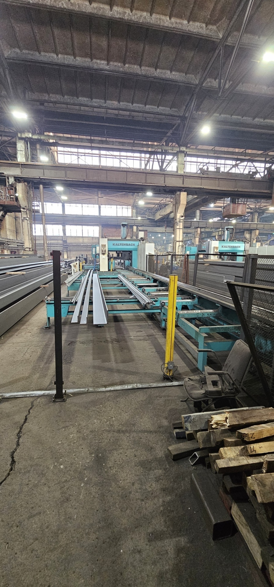 Линия автоматического ленточного пиления профильного металлопроката Kaltenbach KBS761DG, позволяющая в автоматическом режиме резать под углом до 60 градусов двутавры, швеллеры, уголки, профильный трубы и др. шириной до 750 мм