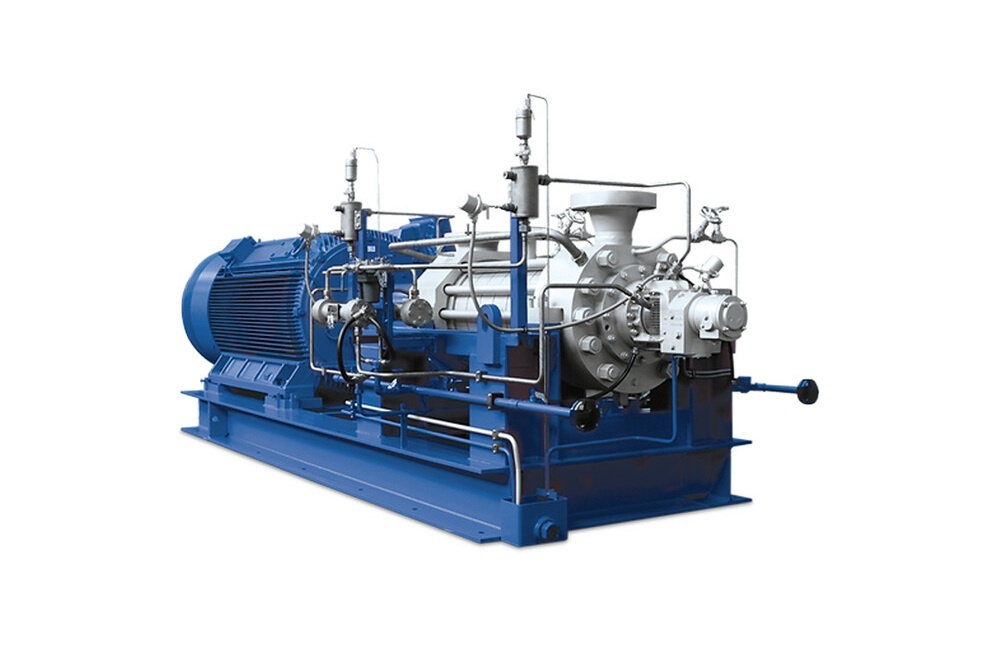 Горизонтальный насос секционного типа с радиальным разъемом корпуса, с радиальными рабочими колесами, однопоточный или двухпоточный, многоступенчатый.