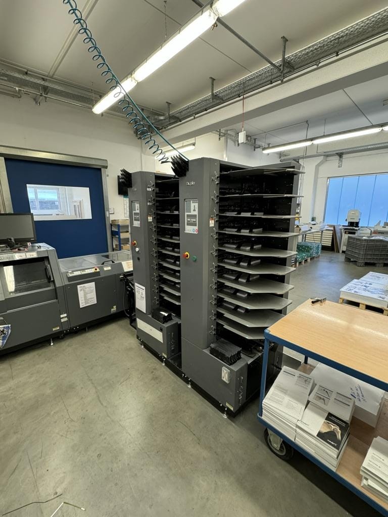 Вкладочно-швейно-Резательный агрегат Duplo iSaddle 2012-2016 г в составе:– Две башни DSC 10/60i (20 станций), Биговально - фальцевальный модуль DBMS-F2 б/у 2014 г. , Брошюровщик DBMS-S б/у 2012 г. , Модуль подрезки боковых кромок DKT-200 б/у 2011 г, Триммер DBMS-T б/у 2012 г.