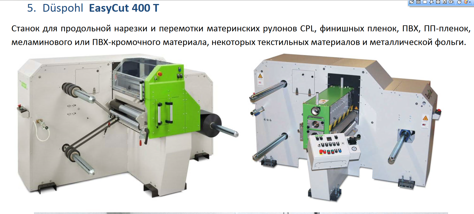 Станок для продольной нарезки и перемотки рулонов DUSPOHL EasyCut 400T Б/У - Продам в Санкт-Петербурге
