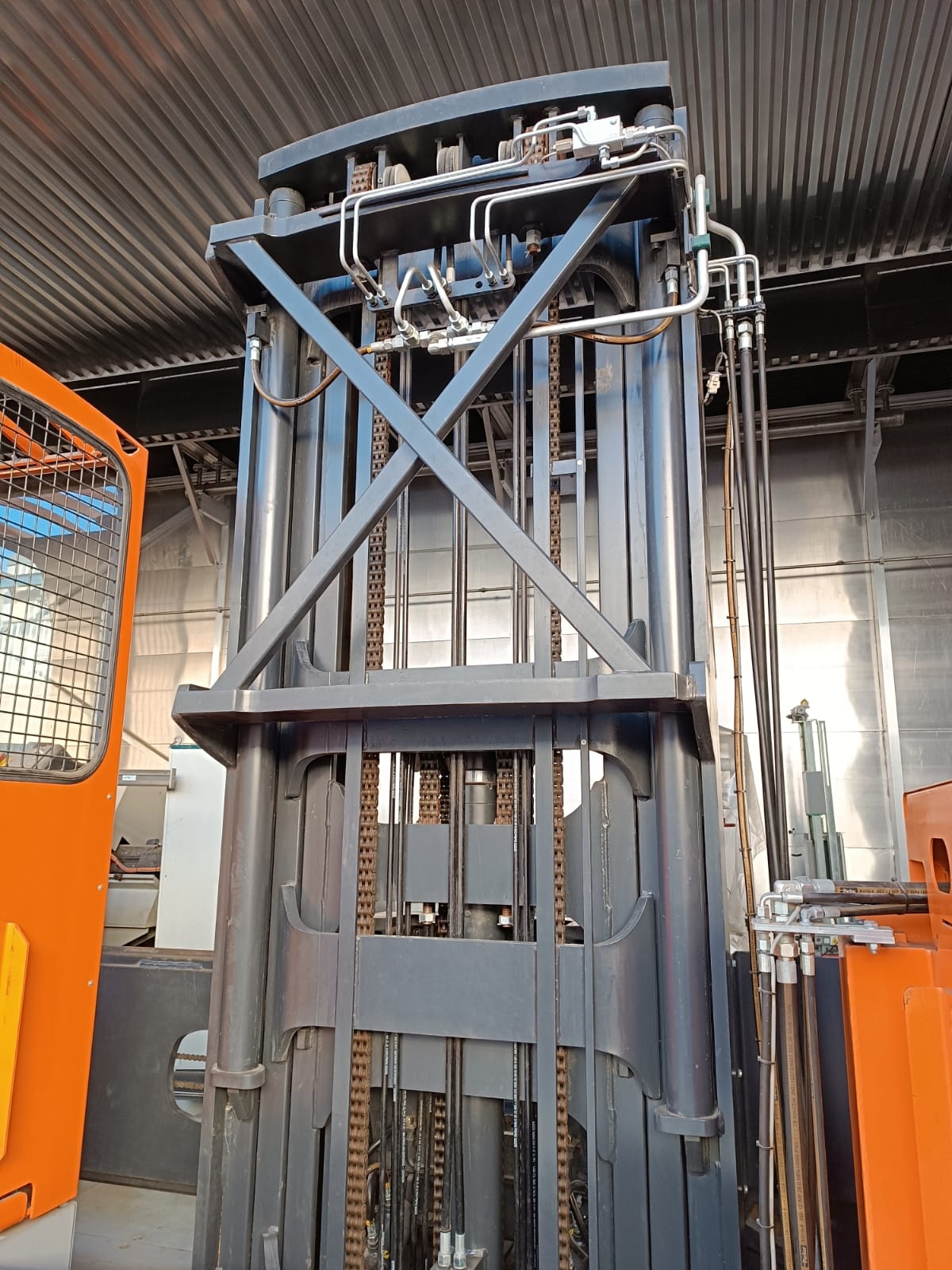 Высота подъема макс. 6200 мм. Г/п 6700 кг (на высоте 4500 мм). Масса 14500 кг.