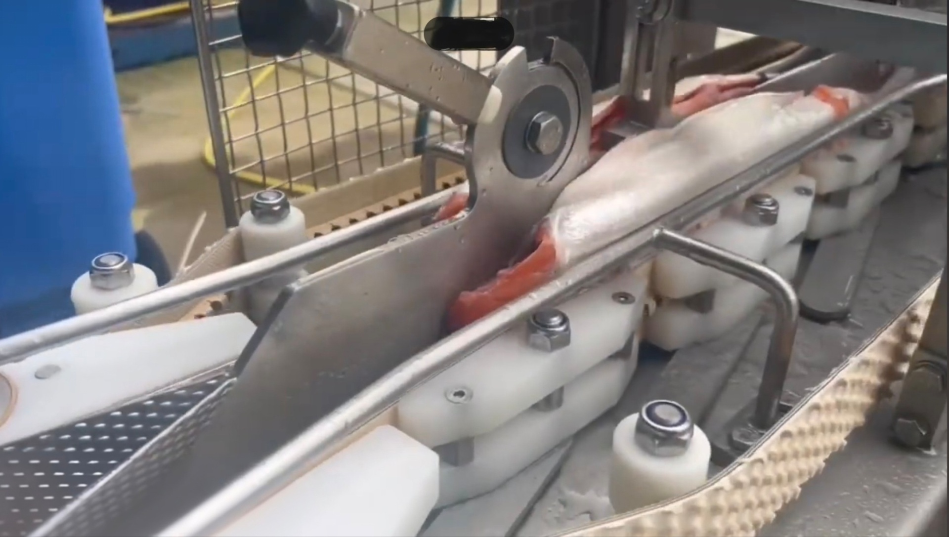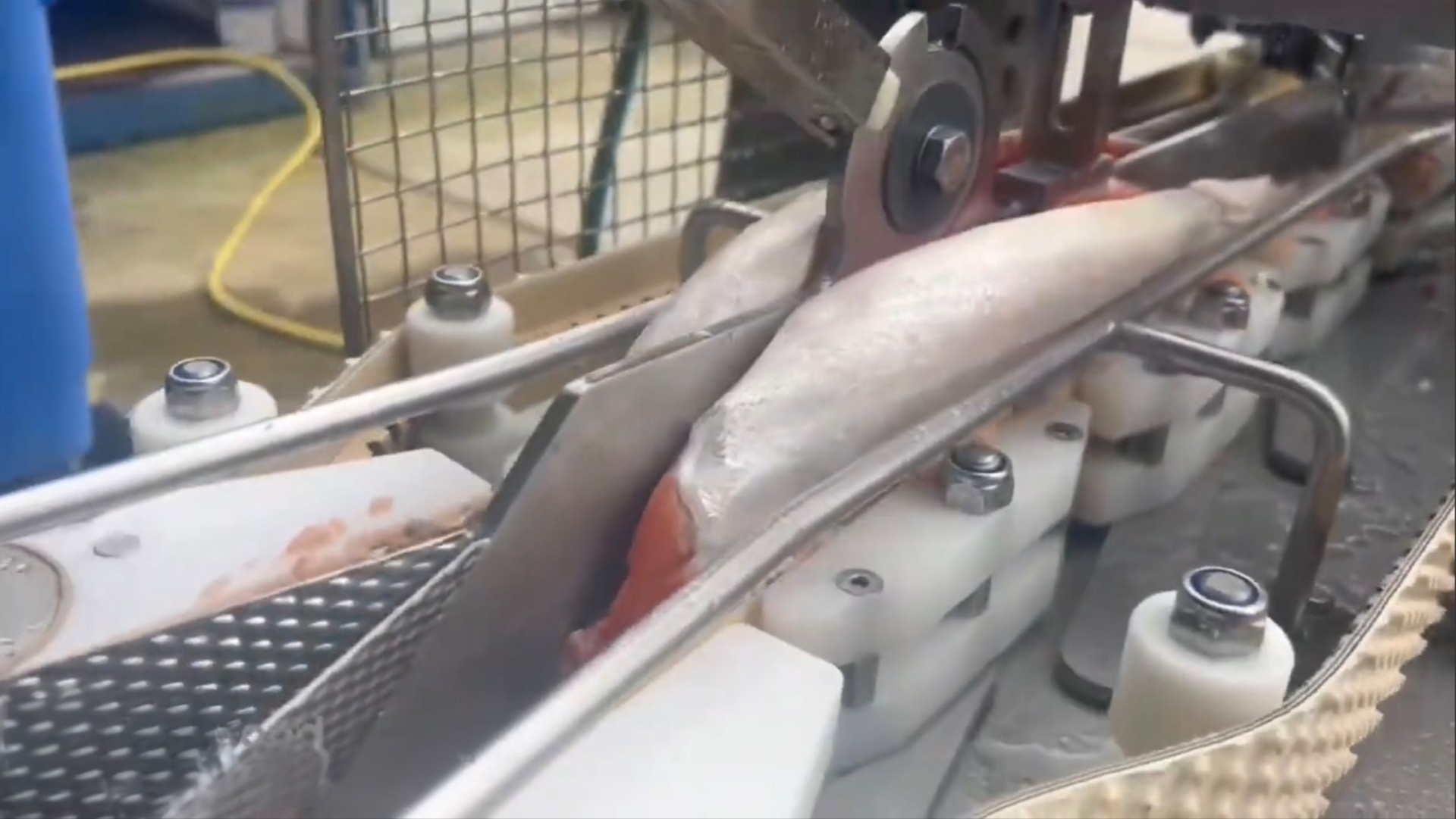 Рыба, предварительно выпотрошенная и обезглавленная, укладывается на загрузочный лоток брюшной частью вверх. Затем подающий конвейер направляет её в секцию резки, где сенсор автоматически настраивает ножи для точного разреза вдоль центральной кости. Благодаря этому каждая рыба обрабатывается индивидуально, что делает технологию одной из самых передовых на мировом рынке.