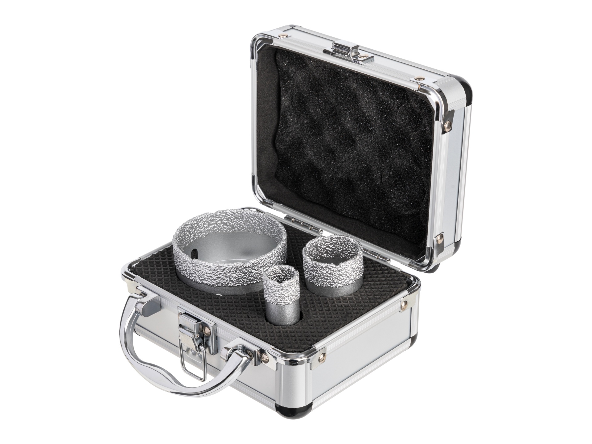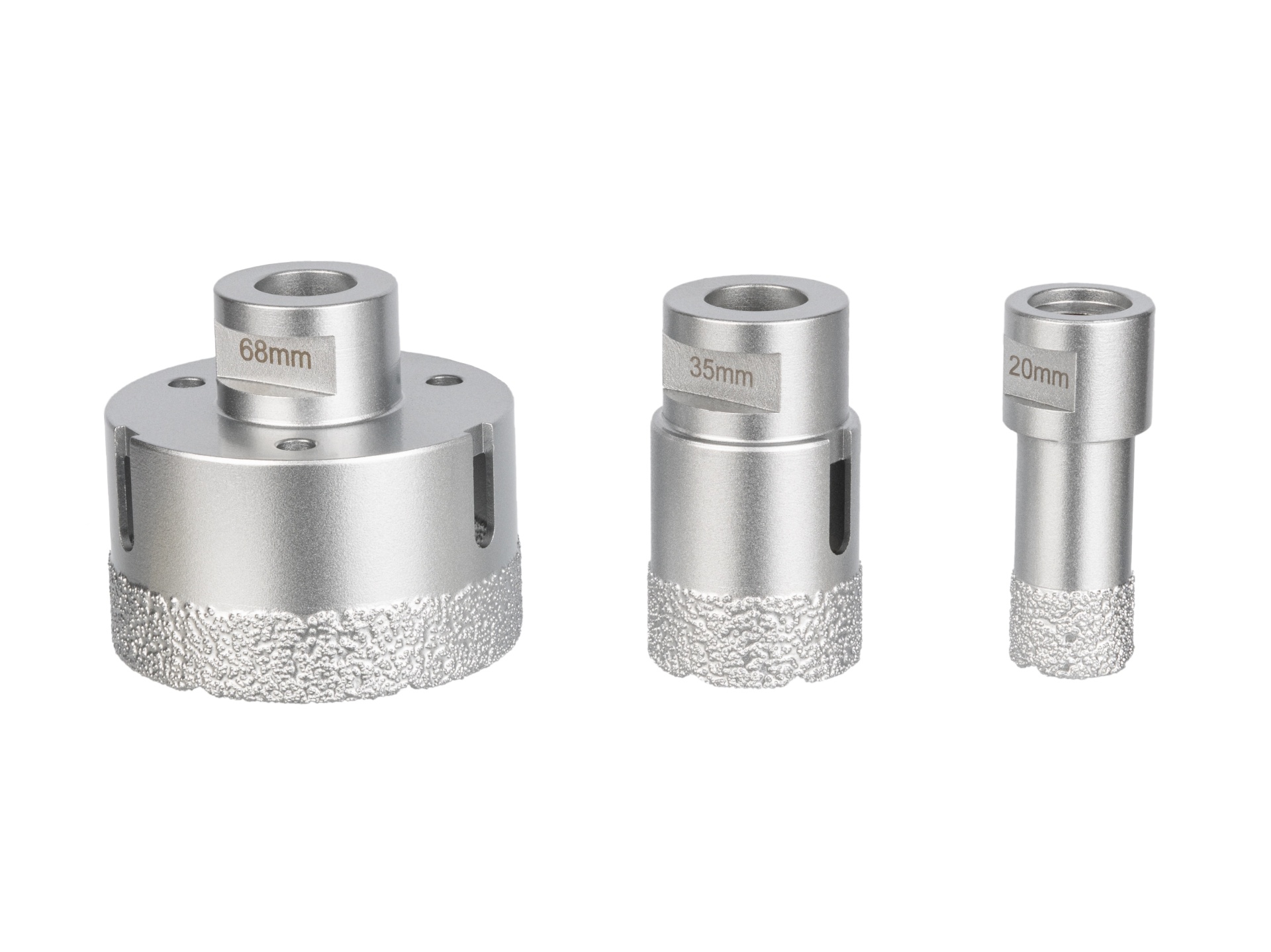 Набор включает в себя коронки с диаметрами 20 мм, 35 мм и 68 мм, что позволяет выбрать подходящий размер для различных задач.