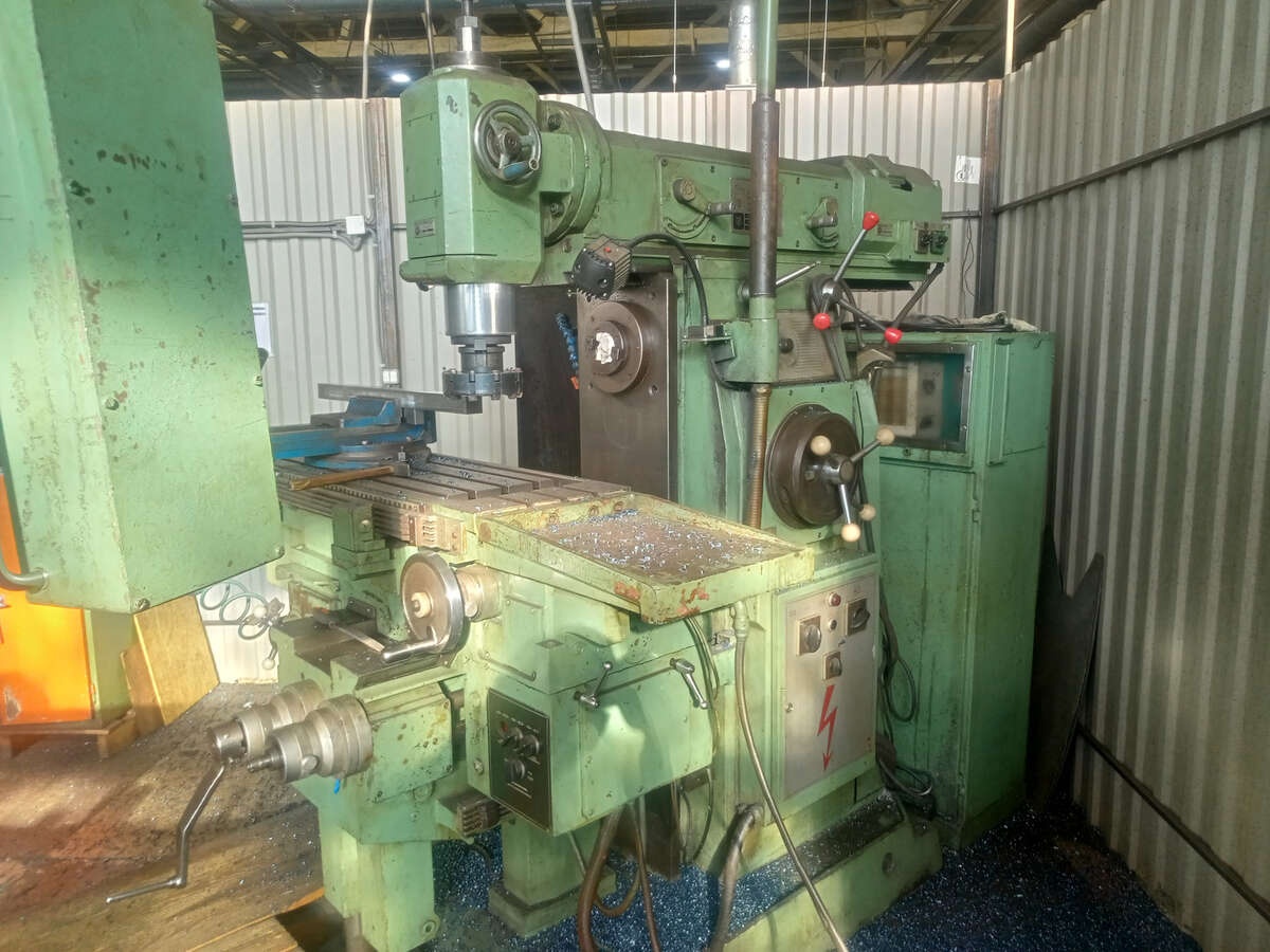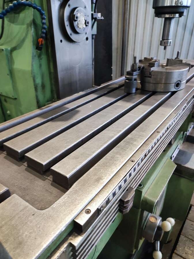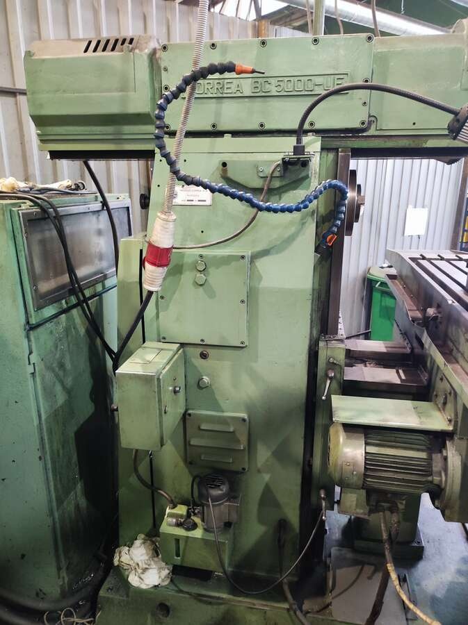 Универсальный фрезерный станок CORREA BC5000-UE консольной конструкции, предназначенный для фрезерования как при помощи горизонтального шпинделя, как например цилиндрическими, модульными и др. фрезами, так и устанавливаемыми в шпиндель поворачивающейся на 360° вертикальной, расположенной на хоботе и способной перемещаться перпендикулярно оси хода стола головки