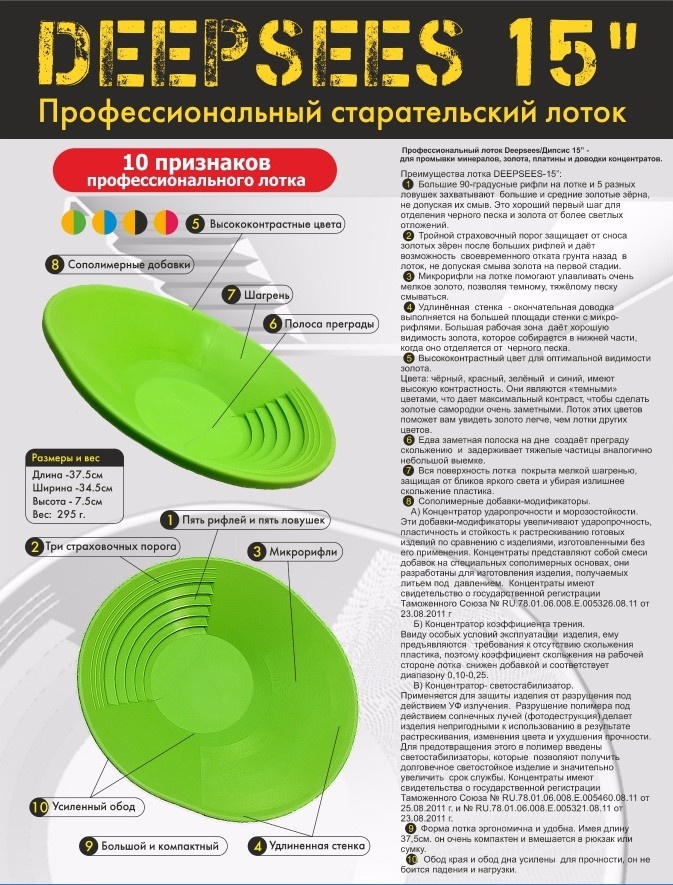 Лоток DEEPSEES/Дипсис 15" подойдет профессионалам и любителям, позволяет делать промывку и доводку золота на самом высоком уровне.