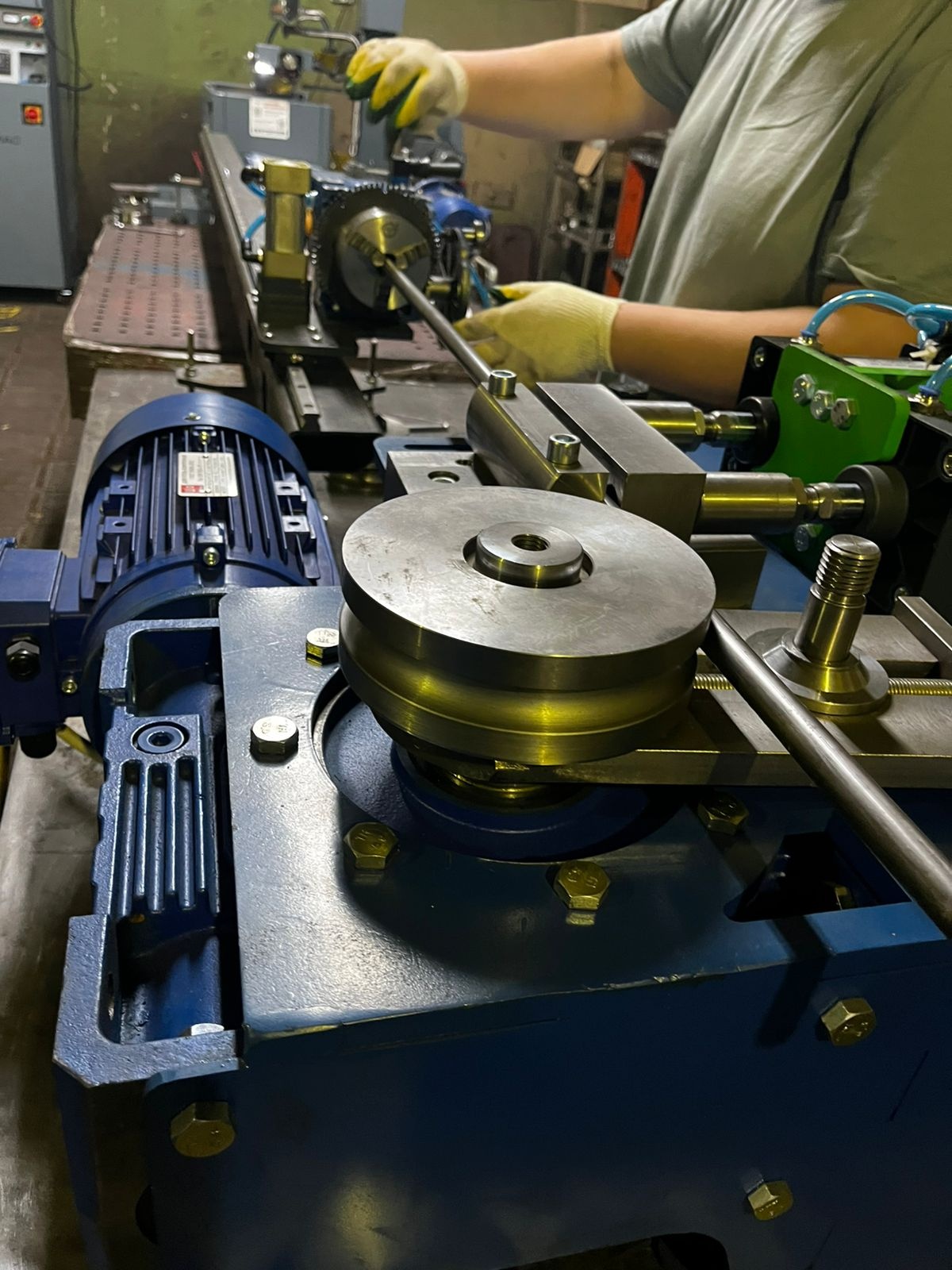 Станок имеет комбинированную электронную систему управления. Переключатель выбора режимов позволяет непрерывно работать в режиме цикла, или в любой момент времени перейти на ручное управление. Настройка крайнего положения угла гибки происходит вручную. Повторяемость деталей достигается за счет применения бесконтактных индуктивных датчиков крайних положений и частотно-регулируемого электропривода. Гибочный ролик имеет плавное ускорение в начале процесса гибки, это позволяет избежать локальных повреждений поверхности трубы. Наличие частотного преобразователя не только предохраняет электродвигатель от перегрузок, но и позволяет настроить комфортную скорость работы.