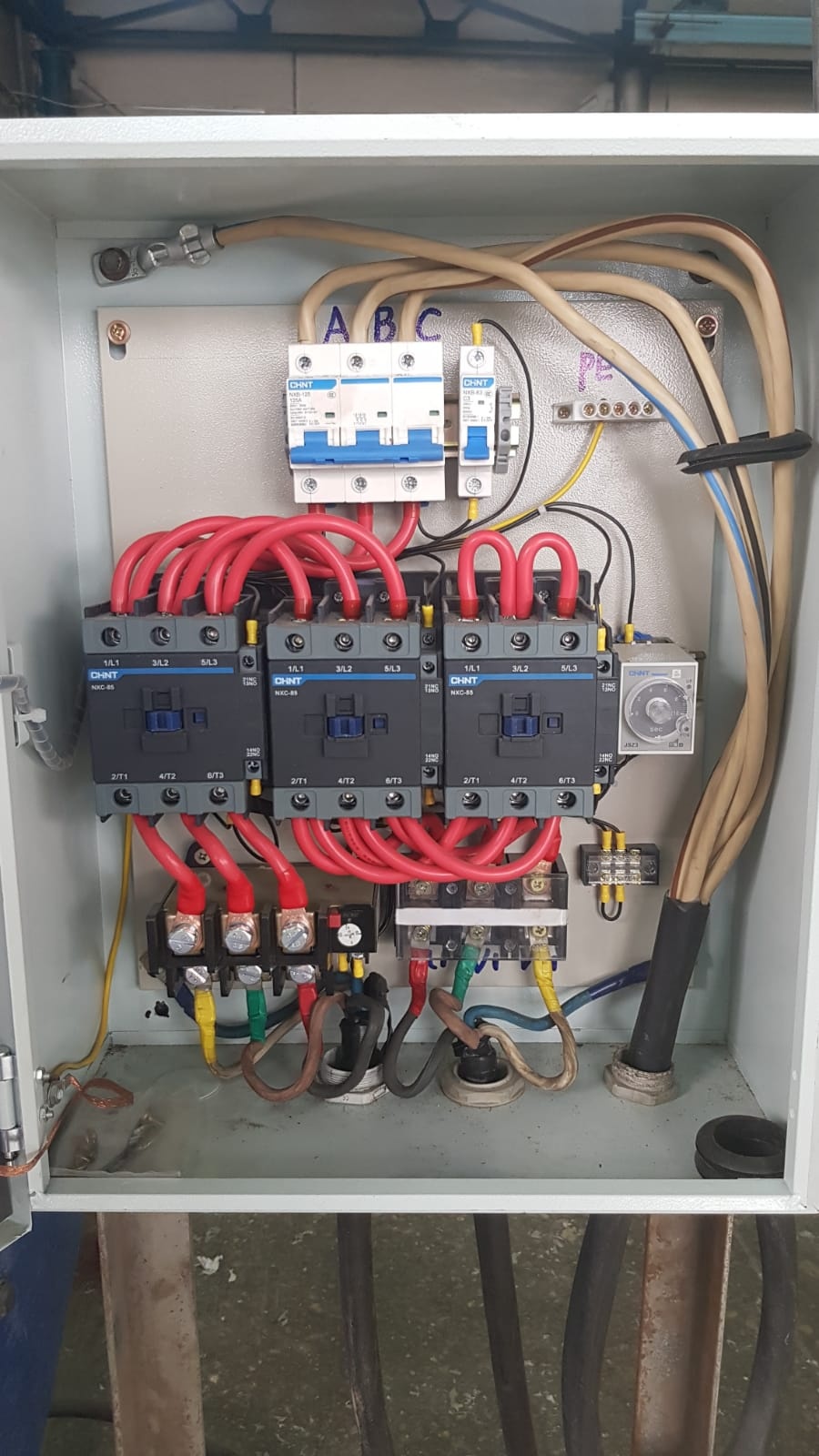 Полноценный щит управления со всеми необходимыми защитами и системой плавного пуска "звезда-треугольник" смотрите фото!